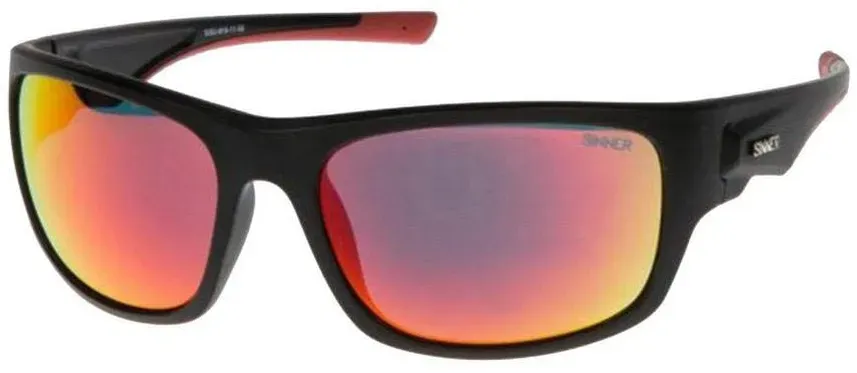 Gewöhnlich versandfertig in 2 bis 3 TagenSINNER Bruno Sonnenbrille - Herren und Damen - Verspiegelt 100% UV400 Schutz Dezenrierte öllinsen Langlebiges Material - Fahrradbrille, Radbrille und Sportbrille für Outdoor - Schwarz & Rot - Einheitsgröße