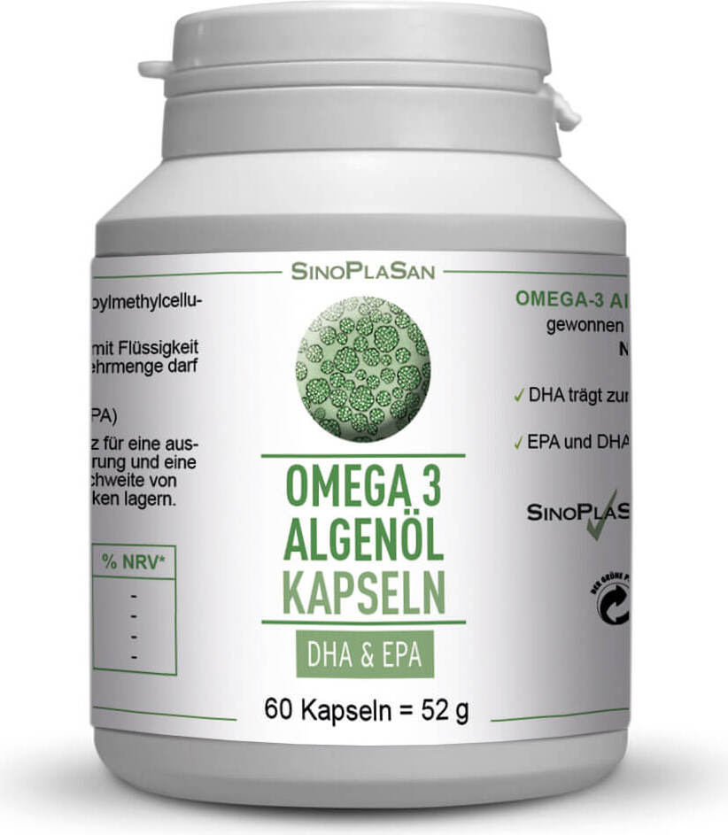 EAN: 4041742007373 - Vegane Omega-3 Algenöle: Die Gesunde Wahl für Herz, Gehirn und NachhaltigkeitDieses Omega-3 Algenöl von Sinoplasan bietet zahlreiche gesundheitliche Vorteile, darunter die Förderung der Herzgesundheit, die Unterstützung eines gesunden Blutdrucks und die Aufrechterhaltung eines ausgeglichenen Triglyceridspiegels im Blut. Sie tragen auch zur normalen Gehirnfunktion und Sehkraft bei.Diese veganen Algenöle sind die ideale Omega-3-Quelle für Veganer und Vegetarier, da sie aus pflanzlichen Mikroalgen gewonnen werden und somit eine ethische und gesundheitlich vorteilhafte Option darstellen.Das Algenöl hat im Vergleich zum Fischöl besondere Vorteile. Es wird aus der Mikroalge Schizochytrium sp. (Alge mit dem höchsten DHA-Gehalt) gewonnen und ist eine nachhaltige Quelle von DHA und EPA. Es hat eine bessere Bioverfügbarkeit als Fischöl und schont Fischbestände und das Meeresökosystem, da es nachhaltig in geschlossenen Systemen kultiviert wird. Außerdem ist es frei von Mikroplastik und Schwermetallen, die z.B. oft in Fischöl oder Krillöl enthalten sein können. Algenöl enthält mehr Omega-3-Fettsäuren als Fisch und ist für Veganer und Vegetarier geeignet.Die empfohlene tägliche Dosierung von Omega-3-Fettsäuren variiert je nach individuellen Bedürfnissen. Für gesunde Menschen wird eine tägliche Einnahme von 300 bis 600 mg EPA/DHA empfohlen, wobei nicht mehr als 5000 mg täglich aus Nahrungsergänzungsmitteln eingenommen werden sollten. Bei gesundheitlichen Risiken ... ![]() ![]() SinoPlaSan GmbH OMEGA-3 ALGENöL DHA+EPA Kapseln 60 St.