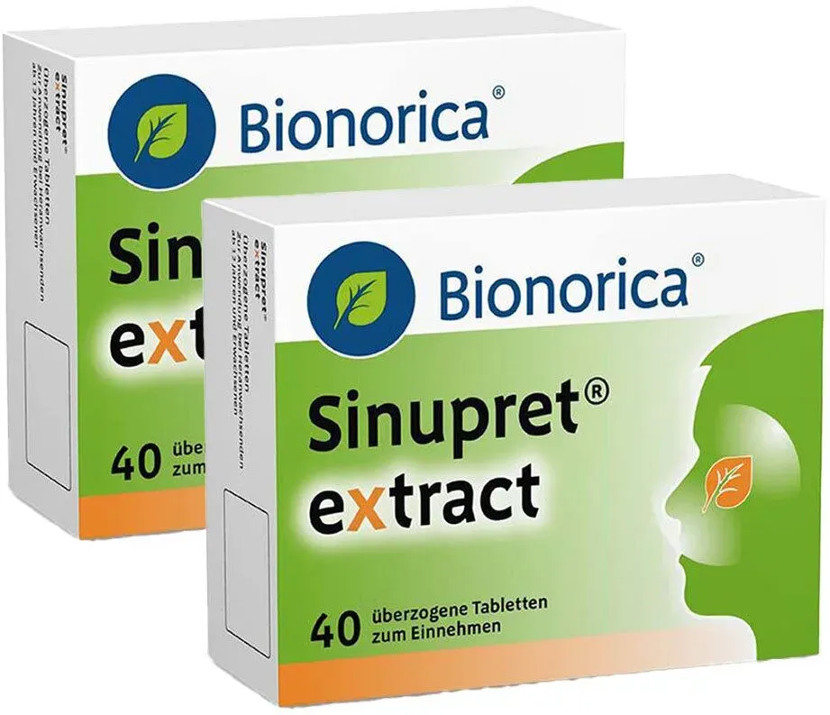 Verfügbarkeit: 1-2 Werktage, 1-2 Werktage - 0,50 €/Stück - Kategorie: Arzneimittel - Bionorica - GTIN:4150092855470 - PZN:09285547 - SINUPRET extract überzogene Tabletten 40 St - 19,92 Euro bei Preisapo - gefunden von billiger.de Dieses Doppelpack von Shop Apotheke DE für 41.51 Euro bietet eine größere Menge zu einem vorteilhaften Preis pro Tablette. ![]() ![]() Sinupret extract Doppelpack 2x40 St überzogene Tabletten