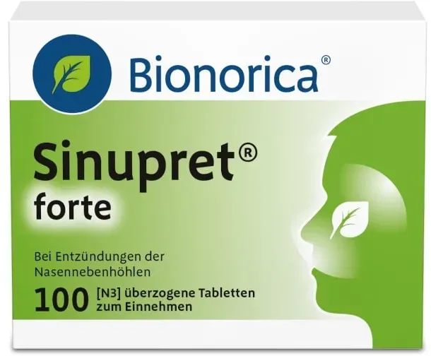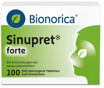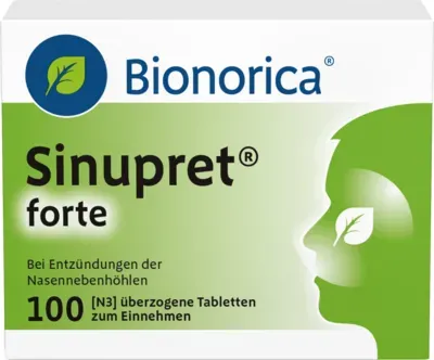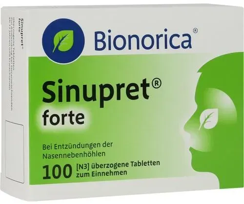0.34 / 1 ct - Kategorie: Arzneimittel - Bionorica - GTIN:4150086255965 - PZN:08625596 - 08625596: Bionorica SE - SINUPRET forte überzogene Tabletten 100 St - 33,76 Euro bei ayvita.de - gefunden von billiger.de ![]() ![]() Bionorica SINUPRET forte überzogene Tabletten 100 St