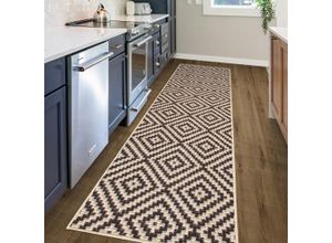 Läufer Stufenmatten Wohnen Wohntextilien Teppiche - - Unser Jute-Diamantteppich wurde aufwendig aus strapazierfähiger Jute gewebt. Fachmännisch aus gefärbter Jute gefertigt, um ein subtiles geometrisches Muster zu schaffen. Dieses Statement-Stück wurde mit einem passenden Polyesterrand versehen, um Ihrem Teppich ein hochwertiges Finish zu verleihen, das die Zeit überdauern wird. Ein geringer Faserverlust ist normal. Ziehen Sie nicht an losen Fasern, sondern schneiden Sie sie einfach mit einer Schere ab. Verschüttete Flüssigkeiten sofort mit einem sauberen, trockenen, weißen Tuch abtupfen. Wenn Sie Reinigungsmittel für Ihren Teppich verwenden, testen Sie diese zunächst an einer unauffälligen Stelle auf Farbveränderungen. Rollen Sie Ihren Teppichstapel 24 Stunden lang erneut aus, um das Aufrollen zu verhindern. Regelmäßig wenden, um eine gleichmäßige Abnutzung zu gewährleisten. Sicher für den Einsatz mit rutschfester Rückseite auf beheiztem Boden. Verwenden Sie einen Staubsauger mit Saugfunktion - rotierende Bürsten können diesen Teppich beschädigen., Maßangaben: Breite: 60 cm, Länge: 600 cm, Höhe: 4 mm, Konfektion: Fixmaß, Gewicht: 1,6, Farbe Material: Farbbezeichnung: schwarz, Material: Jute, Rückenmaterial: Latex, Materialeigenschaften: robust, Optik/Stil: Design: Sisal-Optik, gemustert, Motiv: Rauten, Designerstellungsart: handgewebt, Ausstattung Funktionen: Fußbodenheizungsgeeignet: ja, Oberflächenbeschaffenheit: robust strapazierfähig, Wendeteppich: nein, ... Ein großer Sisal-Teppich aus Naturfasern mit rutschfester Unterseite, ideal für Wohnzimmer oder Schlafzimmer. ![]() ![]() Lord of Rugs Sisal-Teppich, natürliches Gewebe, rutschfest, Flachgewebe, Baumwolle, eingefasst, Wohnzimmer, Küche, Schlafzimmer, Flur, Schwarz, Größe L, 160 x 230 cm