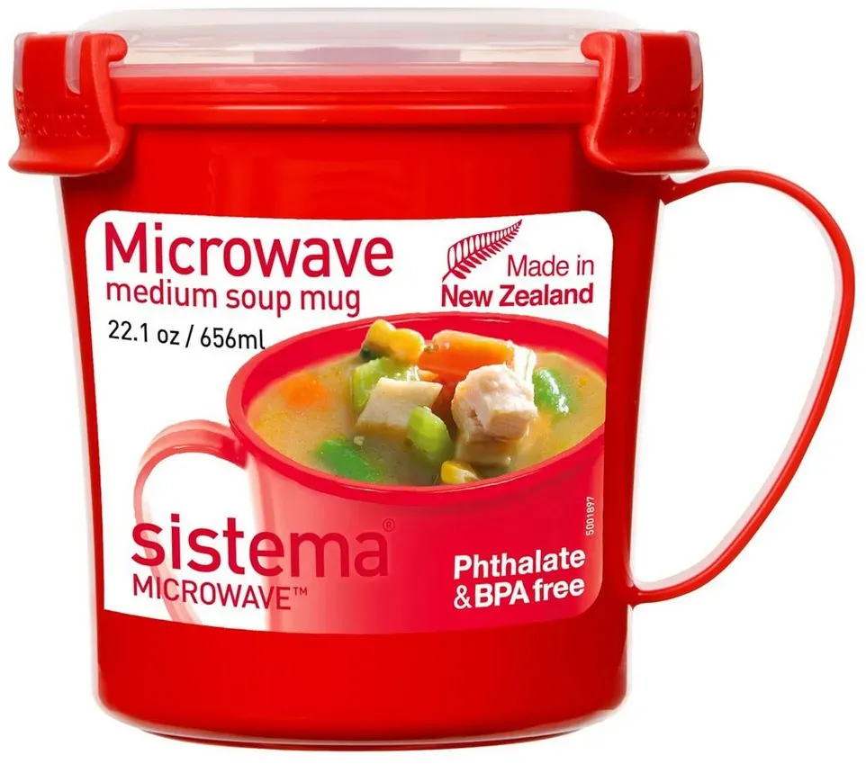Zustand: Neu - Vorratsdosen - Sistema - 1107 - EAN: 9414202011077 - Ideal zum Aufwärmen von Suppe, Eintöpfen und heißen Getränken in der Mikrowelle Das Belüftungsventil im Deckel erlaubt das Erwärmen des Inhalts ohne Spritzer und hält Ihre Mikrowelle sauber Mit praktischem Transportgriff für eine sichere Handhabung Mit den unverwechselbaren, leicht verschließbaren Sistema KLIP IT Clips Spülmaschinengeeignet (oberstes Fach); geeignet für die Aufbewahrung im Kühl-/Gefrierschrank; mit offenem Ventil mikrowellengeeignet - bei Amazon.de ![]() ![]() Sistema Mikrowellendose - MEDIUM SOUP eBay MUG 650 ml rot