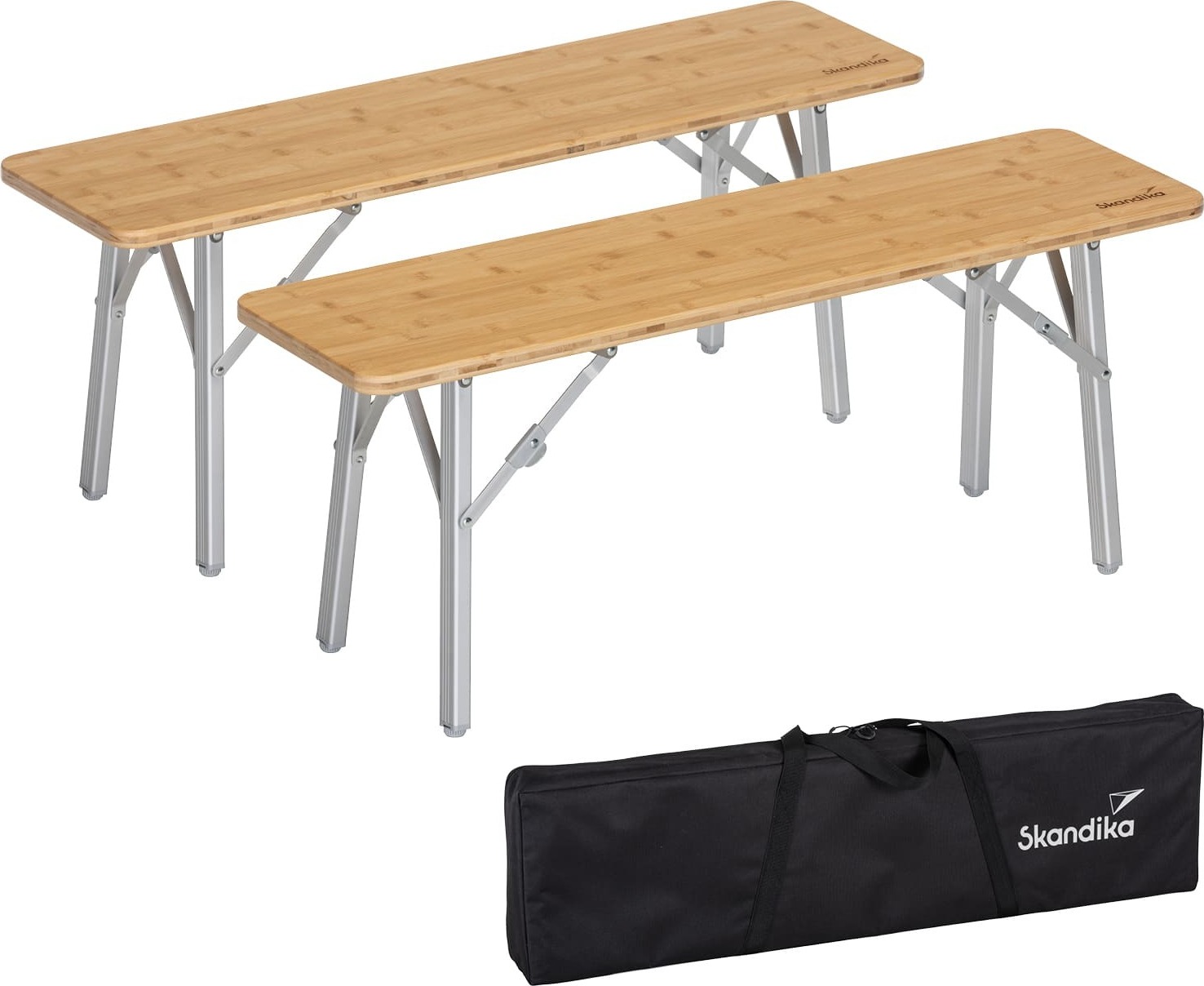 lieferbar-in 2-3 Werktagen bei dirSkandika Sitzbank Tolja Bambus Campingbank, Gartenbank, Bierzeltbank, klappbar, faltbar, 100 x 27 x 39 cm, bis 200 kg belastbar, wetterfest, Tragetasche