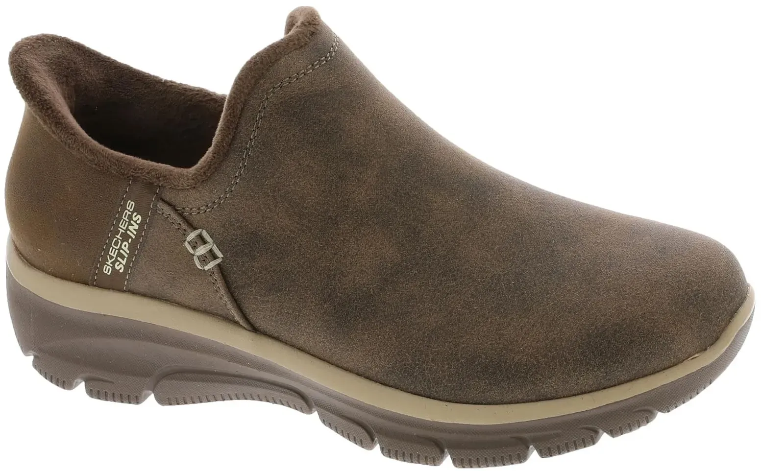 3 Händlerangebote bei billiger.de - Kategorie: Sneaker - SKECHERS - Starten Sie mit mühelosem Komfort und Bequemlichkeit in die Saison mit den Skechers Hands Free Slip-ins Relaxed Fit : Easy Going - Modern Hour. Dieser modische Bootie ist mit unserem exklusiven Heel Pillow ? ausgestattet und verfügt über ein mit 3M Scotchgard behandeltes Obermaterial aus veganem Leder mit Kunstfellfutter und ein gepolstertes Skechers Air-Cooled Memory Foam Fußbett. Wesentliche Merkmale Skechers Hands Free Slip-ins für eine einfache Passform Das exklusive Heel Pillow ? hält den Fuß fest an seinem Platz Komfortables, gepolstertes Fußbett mit Skechers Air-Cooled Memory Foam Einlegesohle Relaxed Fit für eine bequeme, geräumige Passform im Zehen- und Vorfußbereich Behandelt mit 3M Scotchgard , um Wasser und Flecken zu widerstehen. Hergestellt aus 100% veganen Materialien. Einzelheiten Obermaterial aus veganem Leder mit Kunstfellfutter. Flexible Traktions-Laufsohle 1 1/4 Zoll volle Länge Skechers Logo-Aufdruck. Ref.: 167872, Außenmaterial: Leder, Farbe: Braun, Absatzhöhe: Wohnung, Schließen: Keine, Stil: Lässig - GTIN:0196989487830 ![]() ![]() SKECHERS Damen. Easy Going Modern Hour Stiefelette, Chocolate, 37 EU