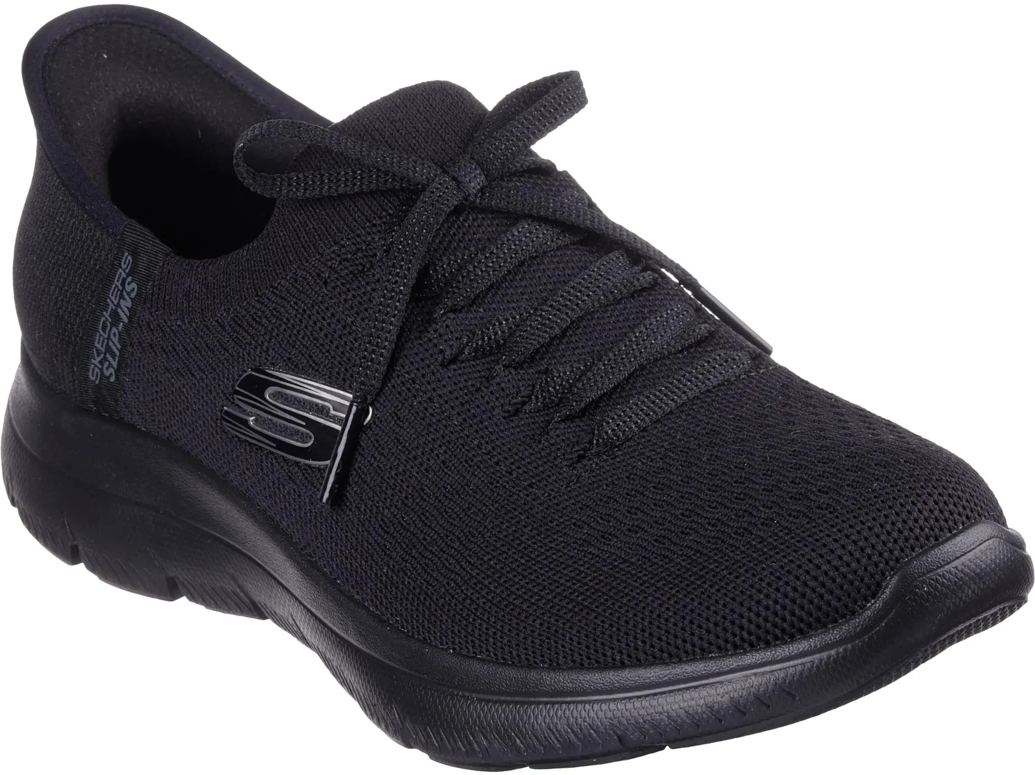 8 Händlerangebote bei billiger.de - Kategorie: Sneaker - SKECHERS - Fabric Obermaterial aus Funktionsstrick mit angedeuteter Schnürung Leichte, stoßdämpfende Zwischensohle mit Metallbesatz Flexible Traktionslaufsohle Skechers Logo - GTIN:0197976349667 ![]() ![]() SKECHERS Slip-Ins: Summits - New Daily 150263-BBK, Women Sneakers, Black, 40 EU