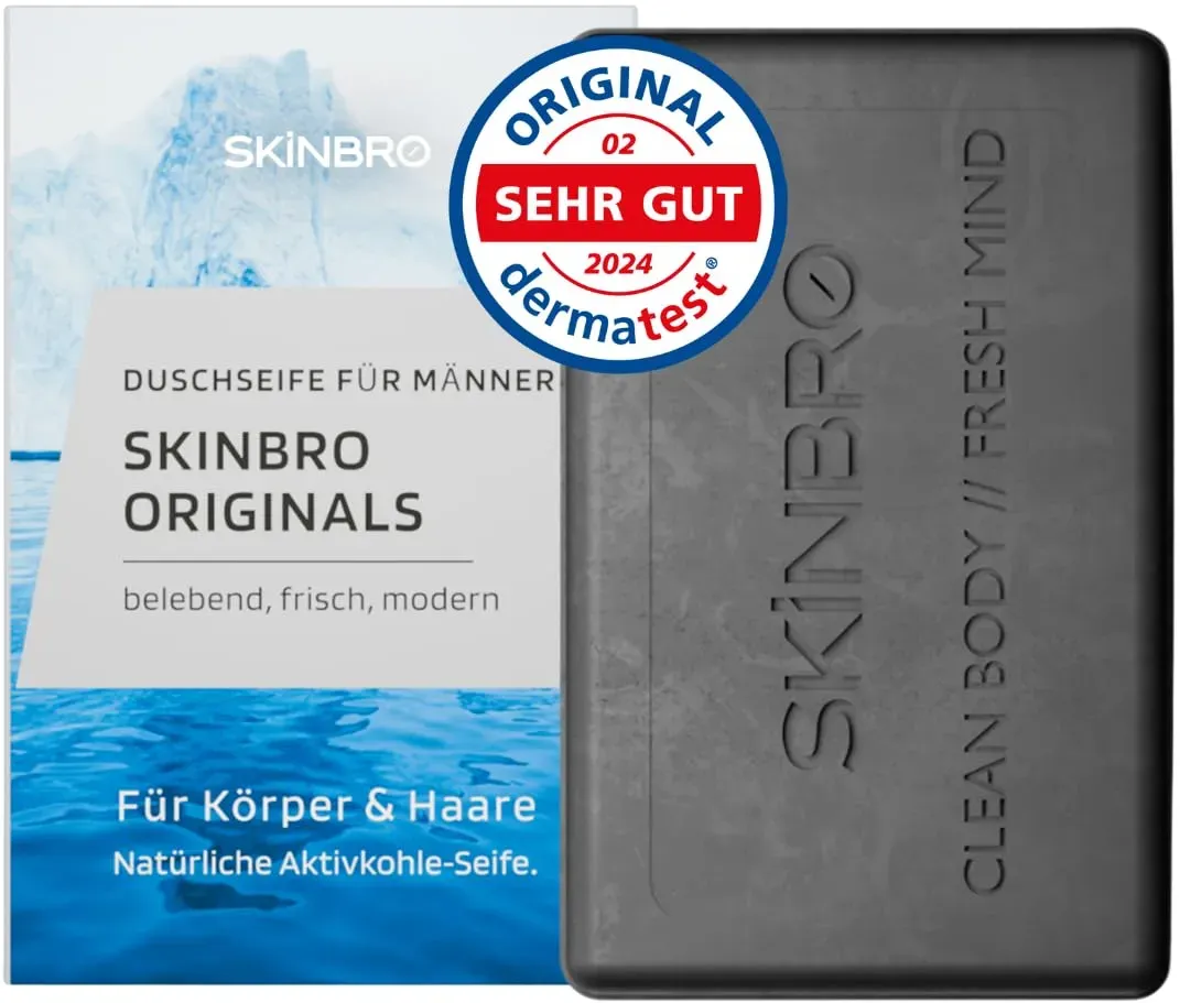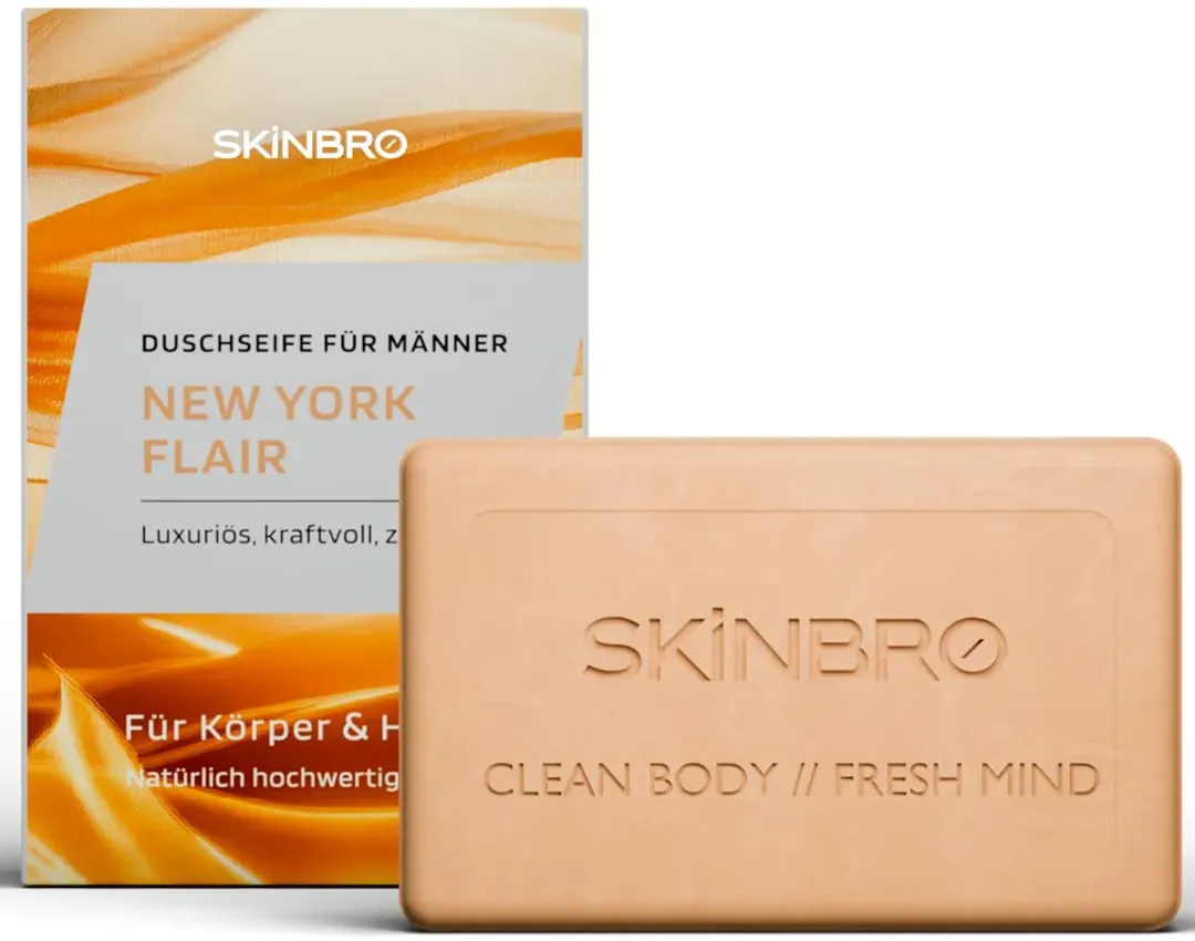 Zustand: Neu - 149,90 € / kg - Seifen - SKINBRO - DS1 - EAN: 4270004060966 - VIELSEITIGE PFLEGE FÜR DICH - Die SKINBRO Duschseife ist ideal für deine Haar-, Körper-, Gesichts- und Bartpflege. Erlebe eine intensive Reinigung mit der veganen und nachhaltigen Formel, frei von Silikonen. Genieße ein natürliches Duscherlebnis mit fester Seife - auch für empfindliche Haut geeignet! SPORTLICHER DUFT & TIEFENREINIGUNG MIT AKTIVKOHLE - Der sportlich-frische und moderne SKINBRO Originals Duft sorgt für ein belebendes Duscherlebnis, während die Aktivkohle Unreinheiten aus der Haut zieht und ein frisches, belebendes Hautgefühl hinterlässt. Das feste Duschgel ist perfekt für aktive Männer, die langanhaltende Frische schätzen. NATÜRLICHE INHALTSSTOFFE FÜR SANFTE REINIGUNG - Die SKINBRO Seife reinigt gründlich und schonend, ohne deine Haut auszutrocknen - Ideal gegen juckende, trockene oder unreine Haut. Unsere Körperseife für Männer, die eine natürliche Pflege bevorzugen und auf umweltschonende Produkte setzen! BIS ZU 40 ANWENDUNGEN PRO STÜCK - Die feste Seife reicht für bis zu 40 Anwendungen und spart so Platz in deinem Badezimmer. Perfekt als Duschgel-Ersatz und für die tägliche Anwendung - pflegend und ergiebig zugleich! MADE IN GERMANY - Qualität, auf die du dich verlassen kannst - SKINBRO steht für hochwertige Pflegeprodukte, hergestellt in Deutschland. Die natürliche Seife ist umweltschonend und kommt in einer plastikfreien Verpackung zu dir - gut für dich und die Umwelt! - ... ![]() ![]() SKINBRO Festes Duschgel Männer New York Flair - Duschseife Männer Luxuriös & Kraftvoll - Made in Germany, Shampoo Herren Vegan & Nachhaltig- Silikonfrei, Seife Stück, feste Seife, Naturseife 100g
