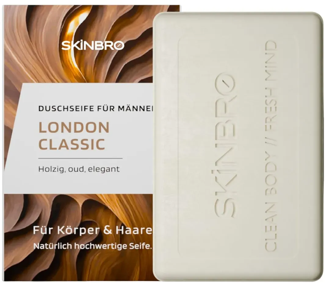 Zustand: Neu - 133,20 € / kg - Shampoos Haarshampoos - SKINBRO - - EAN: 4262508930067 - VIELSEITIGE PFLEGE FÜR HAAR, BART & KÖRPER €” Das feste Shampoo von SKINBRO reinigt Haare, Bart und Haut gründlich. Die pflegende Formel spendet Feuchtigkeit und schützt vor Austrocknung der Kopfhaut und Haare - ideal für die tägliche Anwendung FRISCHER DUFT & INTENSIVE REINIGUNG €” Der sportlich-frische Duft sorgt für ein belebendes Duscherlebnis. Natürliche Inhaltsstoffe reinigen sanft, ohne die Kopfhaut auszutrocknen - geeignet für alle Haartypen LANGANHALTEND & ERGIEBIG €” Eine Shampoo Bar ersetzt bis zu drei herkömmliche Shampoo-Flaschen. Bis zu 60 Anwendungen pro Stück - praktisch für unterwegs und platzsparend im Badezimmer VEGANE FORMEL - OHNE SILIKONE & PARABENE €” Frei von Silikonen, Parabenen und Mikroplastik. Das feste Shampoo pflegt die Kopfhaut sanft und ist für empfindliche Haut geeignet MADE IN GERMANY €” UMWELTFREUNDLICH & NACHHALTIG €” Hochwertige Herstellung in Deutschland mit plastikfreier Verpackung. Die umweltschonende Rezeptur macht das feste Shampoo zur nachhaltigen Alternative für die tägliche Pflege - Verkäufer: SKINBRO im amazon.de Marketplace ![]() ![]() SKINBRO Festes Duschgel Männer London Classic - Duschseife Männer Elegant & Holzig, Oud - Made in Germany, Shampoo Herren Vegan & Nachhaltig - Silikonfrei, Seife Stück, feste Seife, Naturseife 100g