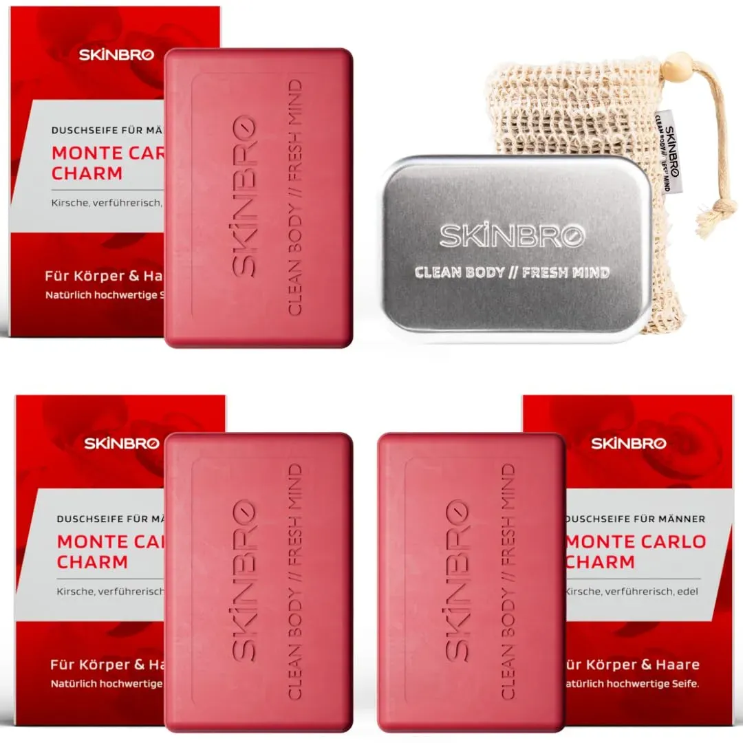 Zustand: Neu - 149,90 € / kg - Seifen - SKINBRO - DSM - EAN: 4270004060935 - VIELSEITIGE PFLEGE FÜR DICH - Die SKINBRO Duschseife ist ideal für deine Haar-, Körper-, Gesichts- und Bartpflege. Erlebe eine intensive Reinigung mit der veganen und nachhaltigen Formel, frei von Silikonen. Genieße ein natürliches Duscherlebnis mit fester Seife - auch für empfindliche Haut geeignet! VERFÜHRERISCHER DUFT - Der verführerische und edle Kirschduft 'Monte Carlo Charm' sorgt für ein außergewöhnliches und charmantes Duscherlebnis. Das feste Duschgel ist perfekt für Männer, die auf einen einzigartigen und anziehenden Duft stehen. NATÜRLICHE INHALTSSTOFFE FÜR SANFTE REINIGUNG - Die SKINBRO Seife reinigt gründlich und schonend, ohne deine Haut auszutrocknen - Ideal gegen juckende, trockene oder unreine Haut. Unsere Körperseife für Männer, die eine natürliche Pflege bevorzugen und auf umweltschonende Produkte setzen! BIS ZU 40 ANWENDUNGEN PRO STÜCK - Die feste Seife reicht für bis zu 40 Anwendungen und spart so Platz in deinem Badezimmer. Perfekt als Duschgel-Ersatz und für die tägliche Anwendung - pflegend und ergiebig zugleich! MADE IN GERMANY - Qualität, auf die du dich verlassen kannst - SKINBRO steht für hochwertige Pflegeprodukte, hergestellt in Deutschland. Die natürliche Seife ist umweltschonend und kommt in einer plastikfreien Verpackung zu dir - gut für dich und die Umwelt! - Verkäufer: SKINBRO im amazon.de Marketplace ![]() ![]()
