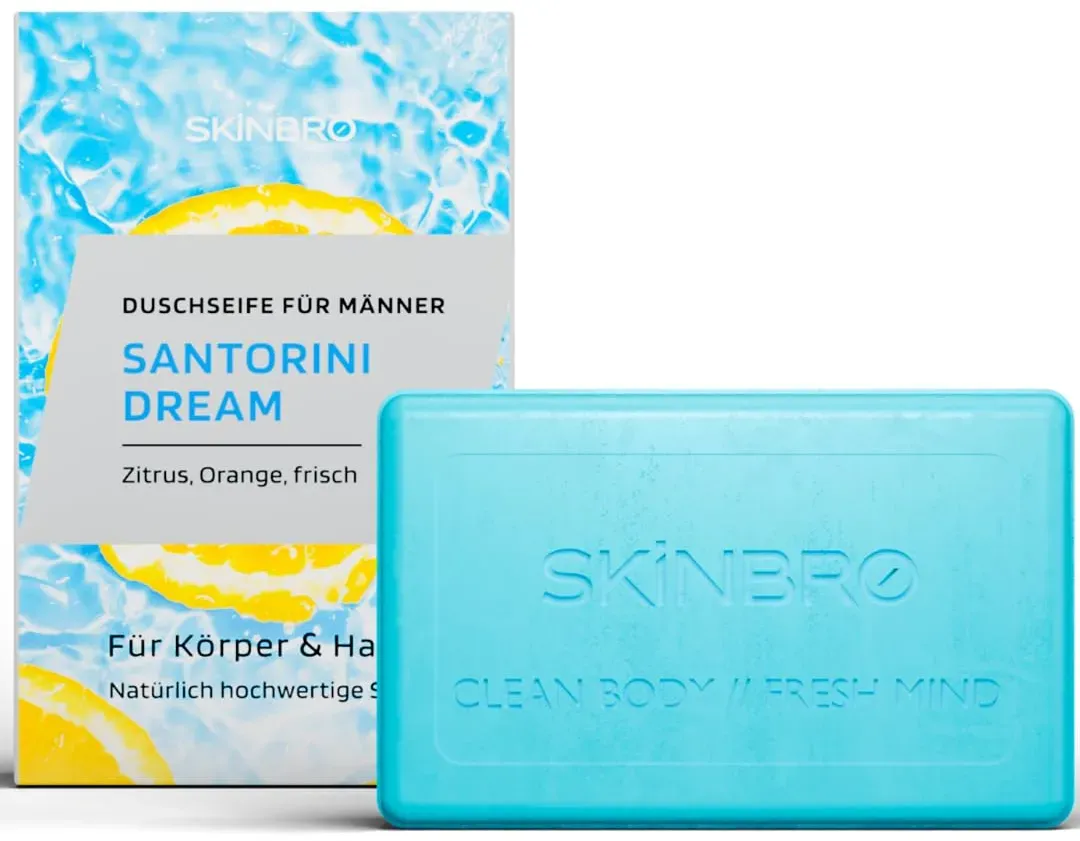 Kategorie: Dusch- & Badeartikel - skinbro - GTIN:4270004060966 - VIELSEITIGE PFLEGE FüR DICH - Die SKINBRO Duschseife ist ideal für deine Haar-, Körper-, Gesichts- und Bartpflege. Erlebe eine intensive Reinigung mit der veganen und nachhaltigen Formel, frei von Silikonen. Genieße ein natürliches Duscherlebnis mit fester Seife - auch für empfindliche Haut geeignet! SPORTLICHER DUFT & TIEFENREINIGUNG MIT AKTIVKOHLE Der sportlich-frische und moderne SKINBRO Originals Duft sorgt für ein belebendes Duscherlebnis, während die Aktivkohle Unreinheiten aus der Haut zieht und ein frisches, belebendes Hautgefühl hinterlässt. Das feste Duschgel ist perfekt für aktive Männer, die langanhaltende Frische schätzen. NATüRLICHE INHALTSSTOFFE FüR SANFTE REINIGUNG - Die SKINBRO Seife reinigt gründlich und schonend, ohne deine Haut auszutrocknen - Ideal gegen juckende, trockene oder unreine Haut. Unsere Körperseife für Männer, die eine natürliche Pflege bevorzugen und auf umweltschonende Produkte setzen! BIS ZU 40 ANWENDUNGEN PRO STüCK - Die feste Seife reicht für bis zu 40 Anwendungen und spart so Platz in deinem Badezimmer. Perfekt als Duschgel-Ersatz und für die tägliche Anwendung pflegend und ergiebig zugleich! MADE IN GERMANY - Qualität, auf die du dich verlassen kannst - SKINBRO steht für hochwertige Pflegeprodukte, hergestellt in Deutschland. Die natürliche Seife ist umweltschonend und kommt in einer plastikfreien Verpackung zu dir gut für dich und die Umwelt! - 14,99 Euro bei Amazon ... ![]() ![]() SKINBRO Festes Duschgel Männer Santorini Dream Duschseife Männer Zitrus, Orange & Frisch - Made in Germany, Shampoo Herren Vegan & Nachhaltig- Silikonfrei, Seife Stück, feste Seife, Naturseife 100g