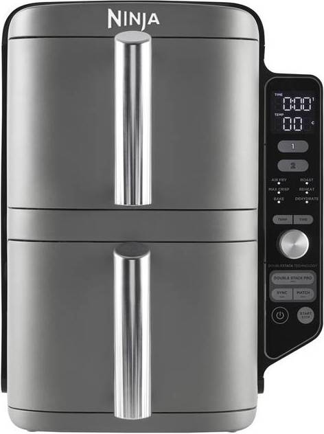 8 Händlerangebote bei billiger.de - Kategorie: Fritteusen - Ninja - AMAZON EXKLUSIV: Heißluftfritteuse in Schwarz & Kupfer mit Silikonzange. 30% schlanker (gegenüber AF400). Großes Fassungsvermögen von 9,5 L für bis zu 8 Personen. Kocht bis zu 55% schneller als Umluftöfen (getestet mit Fischstäbchen und Würstchen) GAREN AUF 4 EBENEN ZUR GLEICHEN ZEIT: Enthält 2 x Schubladen & 2 x Mahlgitter, sodass Sie 4 Ebenen haben und doppelt so viel Essen zubereiten können. Hintere Lüfter sorgen dafür, dass das Essen auf allen Ebenen gleichmäßig gegart und knusprig wird ENERGIEEFFIZIENT: Garen mit bis zu 55 % weniger Energie als ein Backofen* (*Tests und Berechnungen auf der Grundlage der empfohlenen Garzeit für Würstchen, unter Verwendung der Heißluftfunktion im Vergleich zu herkömmlichen öfen) 6 KOCHFUNKTIONEN: Max Crisp, Heißluftfritieren, Braten, Backen, Aufwärmen, Dörren. Bis zu 75 % weniger Fett* mit der Heißluftfritierfunktion (*Getestet im Vergleich zu frittierten, handgeschnittenen Pommes). SYNC & MATCH-Funktionen in 2 Schubladen ENTHALTEN: Ninja Double Stack 9.5 L Heißluftfritteuse (EU Stecker), 2x 4.75 L Schubladen, 2 Antihaft Crisper Gittereinsätze, 2 Racks, Silikonzangen. Spülmaschinenfeste Teile. Abmessungen: H38,5 cm x B28 cm x T47 cm. Gewicht: 10,3 kg. Farbe: Schwarz/Kupfer - GTIN:0622356295802 ![]() ![]() Ninja Double - Stack XL eBay 2-Ebenen 9,5L Heißluftfritteuse + Kontaktgrill SL400EUCP