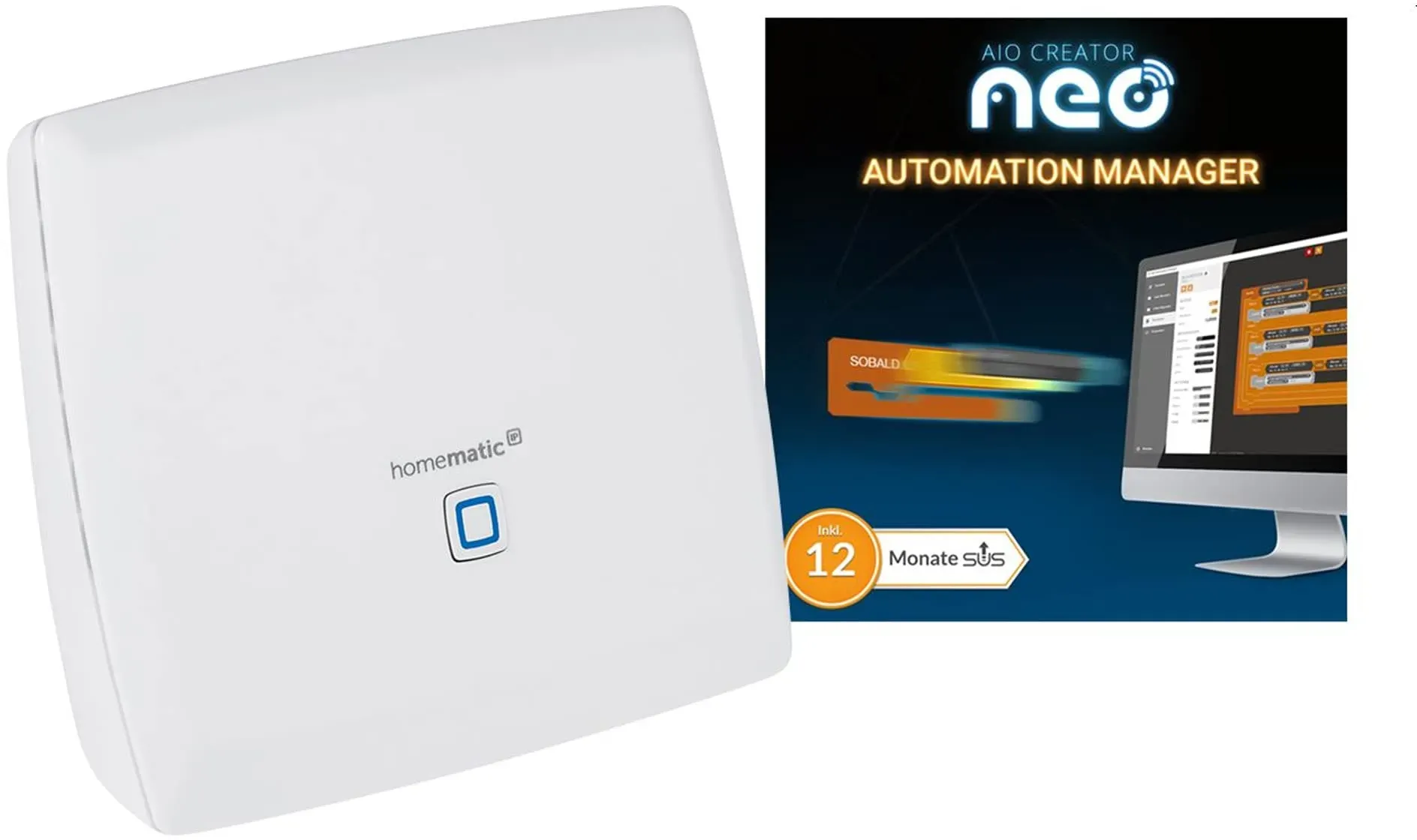 Kategorie: Smart Home - eQ-3 - GTIN:4047976513253 - Marke: Homematic IP Homematic IP Set mit Smart Home Zentrale CCU3 und 2X Rollladenaktor für Markenschalter - 299,85 Euro bei Amazon Marketplace CE - gefunden von billiger.de Dieses Angebot ist ideal für Nutzer, die eine umfassende Lösung mit der CCU3, AIO Creator Lizenz und dem NEO-Plugin Automation Manager suchen. ![]() ![]() Smart Home - Zentrale CCU3 eBay inkl. AIO CREATOR Lizenz und NEO-Plugin Automation Mana