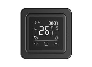 - - Riberger C16 Uhrthermostat - Schwarz | Digitaler WLAN-Raumregler inkl. Sensor für elektrische FußbodenheizungenModern, smart und stilvoll: Der Riberger C16 Thermostat in Schwarz ist die perfekte Lösung für alle, die ihre elektrische Fußbodenheizung intelligent und elegant steuern möchten. Mit WLAN-Anbindung, programmierbarem Wochenplan und App-Steuerung kombiniert er innovative Technik, Komfort und Design - für dein modernes Zuhause.Ideal für Neubauten, Renovierungen oder die smarte Nachrüstung deiner bestehenden Riberger Fußbodenheizung.Technische Daten:Modell: Riberger C16 WiFiFarbe: Schwarz (edle Glasoberfläche)Spannung: 230 V / 50-60 HzMaximale Schaltleistung: 16 A / 3600 WDisplay: Großes, beleuchtetes Touchscreen-DisplayTemperaturregelung:Raum: 5 °C bis 35 °CBoden: 5 °C bis 40 °CSensor: Externer NTC-Bodensensor (3 m, im Lieferumfang enthalten)WLAN: 2,4 GHz - steuerbar per Smartphone-App (iOS Android)Smart Home Integration: Kompatibel mit Google Home Amazon AlexaMontage: Unterputz - passend für gängige SchalterprogrammeSchutzklasse: IP21 - für trockene InnenräumeHersteller: Magnum Germany GmbHFunktionen Vorteile:WLAN-Funktion: Steuere deine Heizung jederzeit und überall via AppProgrammierbarer Wochenplan: Bis zu 6 Heizphasen pro TagTouch-Bedienung: Intuitive Steuerung über modernes GlasdisplayHeizmodi: Automatik, manuell, Urlaubs- und FrostschutzmodusEnergieeffizienz: Spart Strom durch bedarfsgerechtes HeizenOffene-Fenster-Erkennung: Erkennt plötzlichen ... Das tado° Smartes Thermostat X für Fußbodenheizung und Boiler ist eine spezialisierte Lösung für diese Heizsysteme. ![]() ![]() tado° Smartes Thermostat X für Fußbodenheizung und Boiler