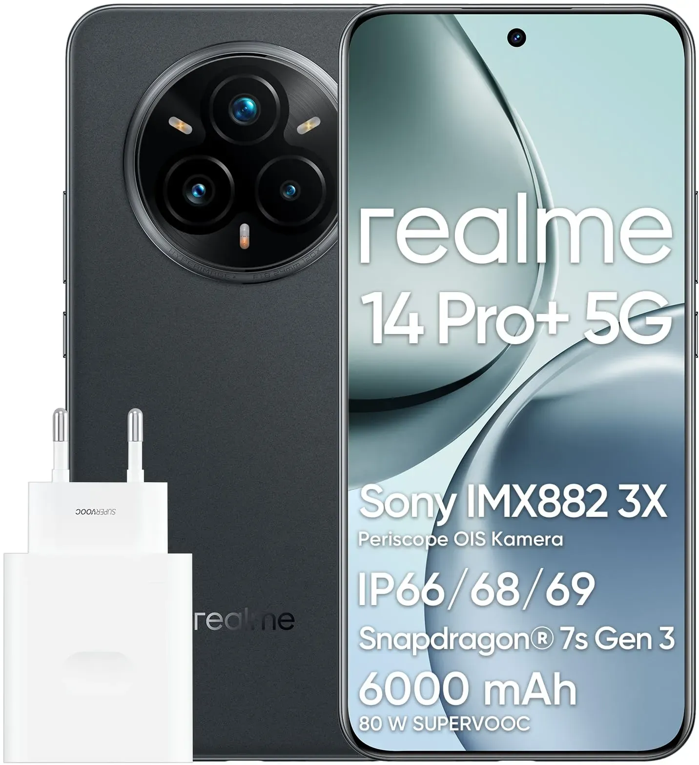 Prepaid-Handys Mobiltelefone - EAN:8806095982892 - Das Powerphone für die private und berufliche Anwendung: SAMSUNG Galaxy A56 5G Smartphone awesome graphite 128 GBMit dem SAMSUNG Galaxy A56 5G Smartphone awesome graphite 128 GB unterwegs E-Mails schreiben, Geld überweisen oder Nachrichten aus aller Welt lesen - ausgestattet mit modernster Technologie und smarten Features erleichtert dieses Gerät rt Ihren Alltag.Vorab einige interessante Eigenschaften für Sie:Dual-SIMFingerabdruckscannerSchnelladenspritzwassergeschütztSo groß ist der interne SpeicherDie Kapazität des internen Speichers beträgt 128 GB. Damit Sie einschätzen können, ob Ihnen der Speicherplatz ausreicht: 128 GB sind z.B. geeignet, um mehr als 30.000 Fotos oder 1.000 Minuten Videomaterial zu speichern. Der Prozessor Exynos 1580 rundet das leistungsstarke Paket ab und gewährleistet eine tolle Performance, auch wenn Sie viele Programme gleichzeitig verwenden.Was ist besonders an diesem Gerät?Sie suchen nach speziellen Features? Das bietet das Modell: Smarte Unterstützung durch praktische AI-Funktionen. Hohe Kontraste und brillante Farben auf hochwertigem Super AMOLED-DisplayAuf dem 17,0 cm (6,7 Zoll) großen Display verteilen sich 1.080 x 2.340 Pixel und liefern gestochen scharfe und farbintensive Bilder mit einer Bildfrequenz von 120 Hz. Eine höhere Auflösung bedeutet generell auch ein schärferes Bild. Je nach Größe des Displays fällt die Auflösung mehr oder weniger ins Gewicht, denn entscheidend ist die ... Das Realme 14 Pro+ 5G überzeugt mit einem großen OLED 4K Curved Display und einem leistungsstarken Snapdragon Prozessor. ![]() ![]() realme 14 Pro+ 5G Android-Handy 12GB+512GB, 6,83" Smartphone, 50MP OIS Kamera, Qualcomm Snapdragon 7s Gen 3 5G, OLED 4K Curved Display 120Hz, 6000mAh Akku, Grau (Mit Adapter)