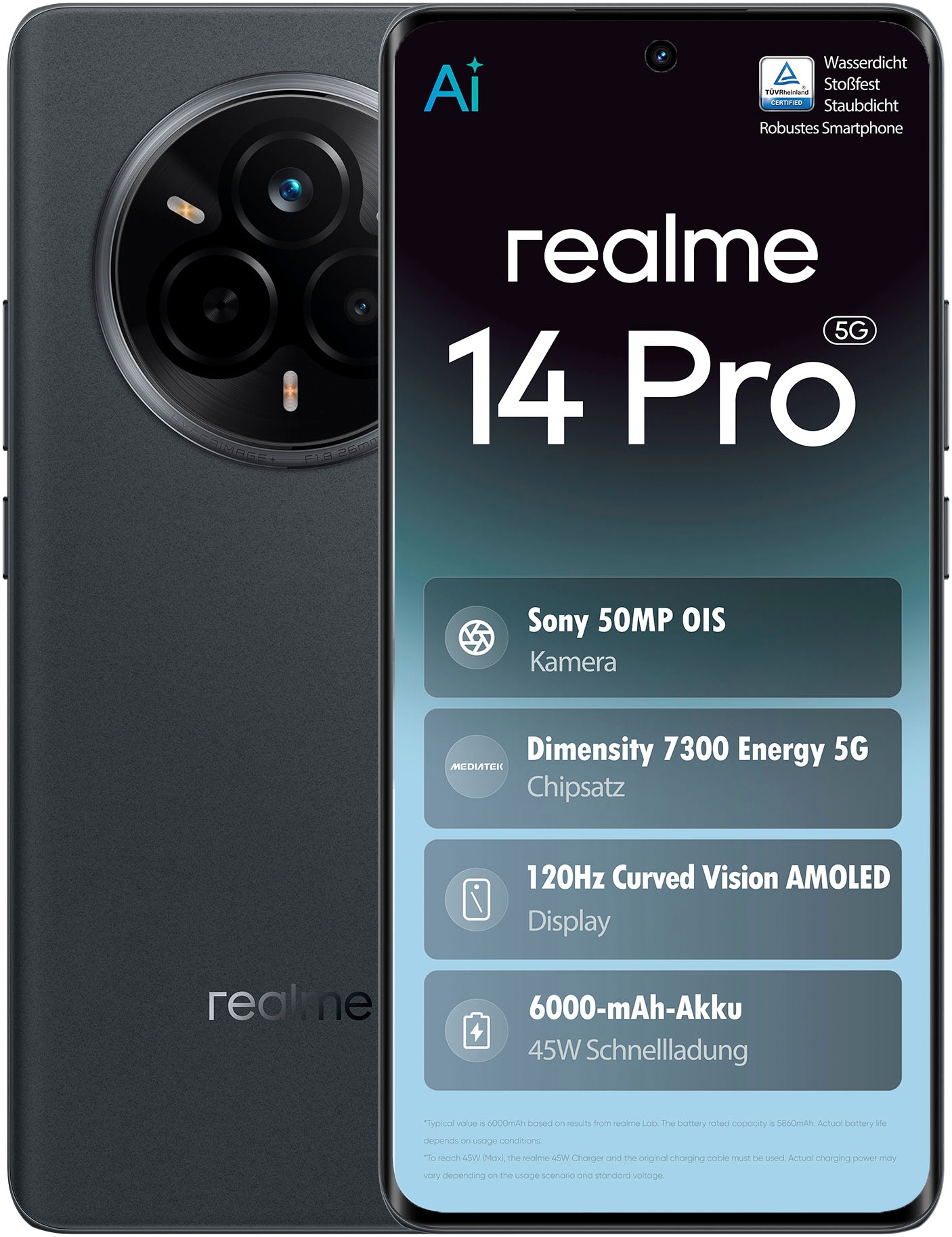 OUKITEL - Robustes Smartphone 5G OUKITEL WP35, 11000 mAh FHD, 2,4K, 8Go + 256 Go, Telefon tragbar Android 14, 64 MP + 32 MP, OTG/NFC/GPS - bei de.aliexpress.com - aus Yadore Produktdaten Das Realme 14 Pro 5G bietet eine gute Speicherkapazität von 256 GB zu einem attraktiven Preis. ![]() REALME Smartphone 14 Pro 5G , grün (suede grau), 256 GB, Mobiltelefone