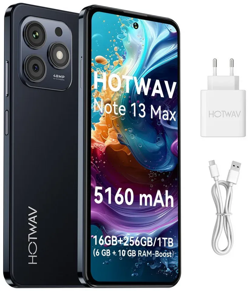 lieferbar-in 5-6 Werktagen bei dirHOTWAV Note 13 Max Handy, 16+256 GB/1 TB Smartphone, Android handy, Smartphone (16,7 cm/6.8 Zoll, 256 GB Speicherplatz, 48 MP Kamera, Smartphone ohne Vertrag, Günstige Smartphone, 5160 mAh) schwarz