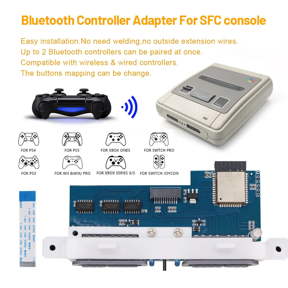 - - Subsonic Switch Controller grau - Kabelloser Bluetooth-Controller mit Vibration und GyroskopMit seiner optimierten Vibrationsengine bietet Ihnen dieser Controller optimales Gameplay für alle kompatiblen Spiele wie Mario Kart 8 Deluxe, Zelda breath of the Wild, Mario Odyssey, Super Smash bros ultimate und weitere mehr.HighlightsLithium-Ionen-Akku für bis zu 5 Std. Spielzeit2 m langes USB-C-Kabel für volle Bewegungsfreiheit beim LadenErgonomisches DesignEingebauter VibrationsmotorInbetriebnahme per Plug Play Maximale Akkulaufzeit: 5 h Akkutyp: Lithium-Ionen-Akku Typ-Ladebuchse: USB-Typ-C Vibration: ja Ergonomisches Design Kabelloser Bluetooth-Controller für Nintendo Switch. Präzise konkave Joysticks. Gebogene Auslöser. Vibration. Eingebauter Akku. USB Ladekabel 2 Meter mitgeliefert. - Versandkostenfrei: false - - - bei kaufland.de - Kaufland e-commerce GmbH (Marketplace) - gefunden von shopping24 Dieser Adapter ermöglicht die Nutzung eines originalen EU SNES Controllers mit modernen Konsolen wie PS3/PS4/PS5/Switch Pro, ideal für Puristen. ![]() JP SFC iBlueControlMod Wireless Controller Interner Adapter Mod für EU SNES zur Anschluss an PS3/PS4/PS5/Switch Pro Controller