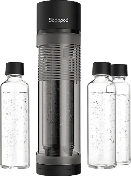 Wasserkocher Wohnen Küchen Küchenkleingeräte - - Sodapop Wassersprudler Logan schwarz - Wasser selbst sprudeln statt kaufenMithilfe des Sodapop Wassersprudlers Logan schwarz können Sie einfach und schnell Sprudelwasser zu Hause herstellen. Das Gerät ist benutzerfreundlich und senkt den Bedarf an abgefülltem Wasser, was der Umwelt zugutekommt. Genießen Sie außerdem die Freiheit, Ihren Sprudelgrad selbst zu bestimmen.Besonderheiten, die den Unterschied machenFolgende besonderen Features bietet das Modell: Kompatibel mit marktüblichen, baugleichen 425g COâ‚‚-Universalzylindern (nicht kompatibel mit dem Sodastream Quick Connect Zylinder). COâ‚‚-Zylinder ist NICHT im Lieferumfang enthalten.Wie ist der Behälter beschaffen?Der Sodapop Wassersprudler Logan schwarz besteht aus Kunststoff. Daher lässt er sich nicht nur einfach reinigen und entkalken, sondern ist auch robust und langlebig.Entspricht dieses Modell Ihren Wünschen?Mit der neutralen Farbe in Schwarz passt das Gerät außerdem wunderbar in jede Küche. Sie erhalten die Lieferung des Sodapop Wassersprudlers Logan schwarz inklusive 2x Glasflasche (1x850ml, 1x600ml) und 1x PET-Flasche 850ml..Bitte beachten Sie die Gefahren- und Sicherheitshinweise:Gefahrenhinweise: - Enthält Gas unter Druck; kann bei Erwärmung explodieren. Sicherheitshinweise: - Vor Sonnenbestrahlung schützen. An einem gut belüfteten Ort aufbewahren.Signalwort: AchtungGefahrenklasse/-kategorie: - Unter Druck stehende Gase (komprimiertes Gas) - ... Dieses Angebot ist eine solide Option für den Wassersprudler mit zwei Glasflaschen und einer PET-Flasche, ohne CO2-Zylinder. ![]() ![]()