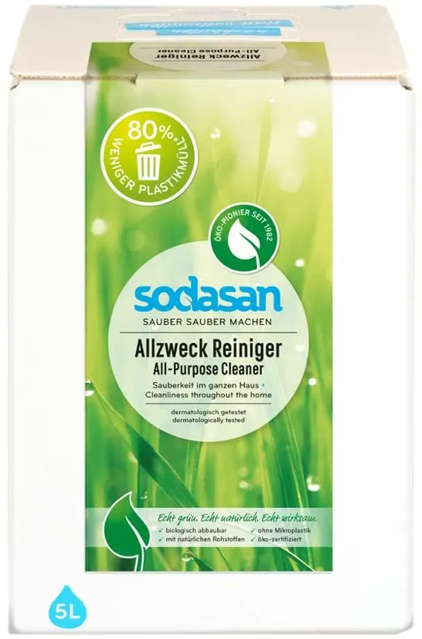 Zustand: Neu - 4,70 € / l - Allzweckreiniger - SODASAN Sodasan GmbH - - - Verpackungsmenge: 2 Liter Bio-Zertifizierung: Universal cleaner for removing standard household messes on all surfaces such as wood, stone, plastic and laminate. - 3 Händler im amazon.de Marketplace Die 5-Liter-GröÃ?e ist ideal für Haushalte mit höherem Verbrauch und bietet einen günstigeren Literpreis. ![]() ![]() Sodasan Allzweckreiniger 5L Allzweckreiniger