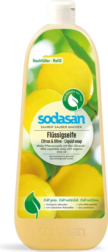Naturkosmetik Seife fl�ssige Seife Körperpflege - EAN:4019886077163 - Zitronige Frische f�r ein perfektes Hautgef�hl! Mit der Bio-Pflanzenseife von SODASAN werden Umwelt- und K�rperbewusstsein eins. Hautpflege im �kot... - gefunden von Kelkoo ![]() ![]() Sodasan Flüssigseife Citrus & Olive Nachfüller 1L milde Pflanzenseife (1er Pack)
