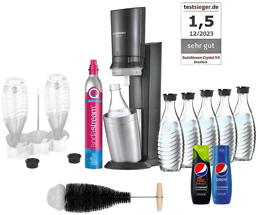 Kategorie: Wassersprudler - Sodastream - GTIN:7290116742380 - SodaStream Crystal 3.0 - 89,99 Euro bei haushaltsparadies.de - gefunden von billiger.de Ein Vorteilspack mit dem Wassersprudler und drei Glaskaraffen, ideal für Haushalte mit höherem Bedarf. ![]() ![]() SodaStream Crystal 3.0 titan Vorteilspack Trinkwassersprudler mit 3 Glaskaraffen