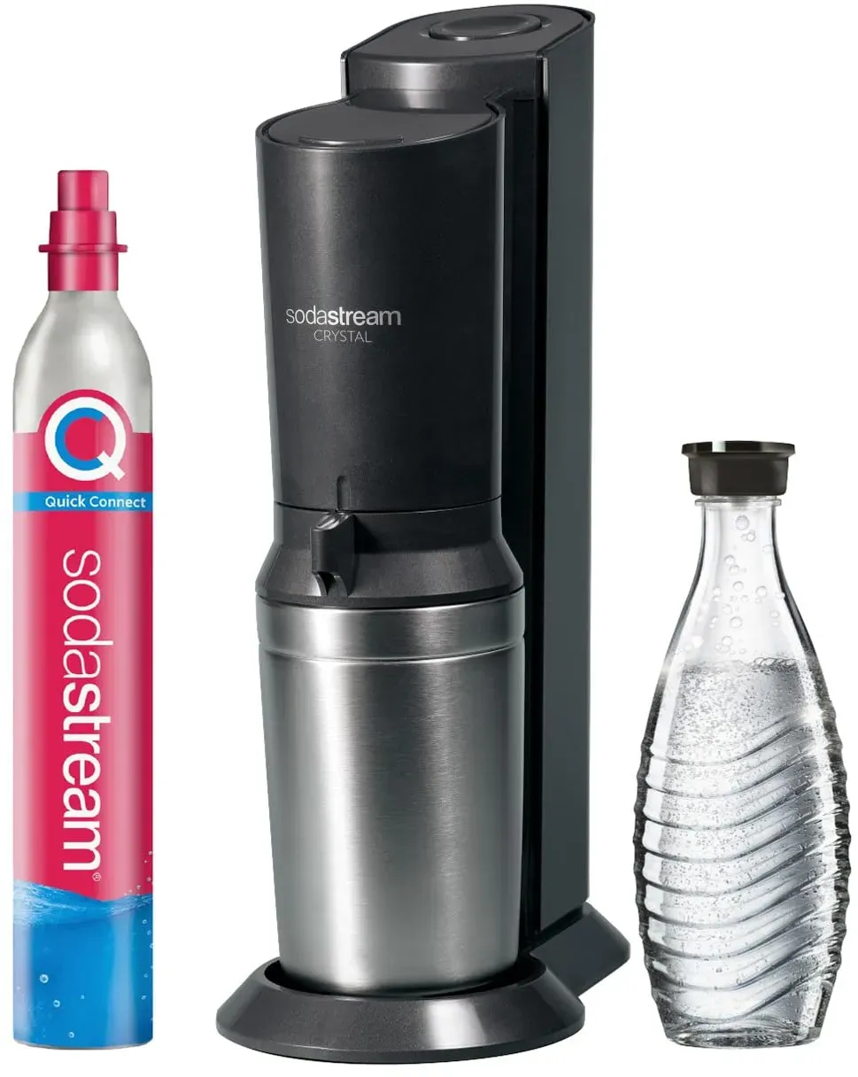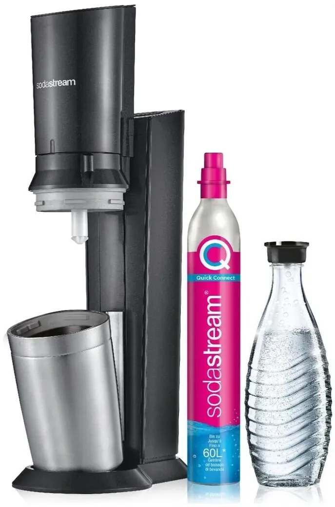 9 Händlerangebote bei billiger.de - Kategorie: Wassersprudler - Sodastream - Der ikonische SodaStream CRYSTAL 3.0TMWassersprudler, jetzt mit Quick-Connect-Zylindersystem für ein einfaches und intuitives Einsetzen des Zylinders. Die SodaStream CRYSTAL 3.0TM ist kompakt und stylish. Sie wird mit einer edlen spülmaschinenfesten Glaskaraffe geliefert und eignet sich perfekt für Designliebhaber. Die ikonische Glaskaraffe verleiht jedem Getränk einen Hauch von Klasse. Kabellos funktioniert ohne Strom, Hygiene und einfache Reinigung, 0.7 L SodaStream CRYSTAL 3.0, Edelstahl, Schwarz, 0,7 l, (e) SodaStream CRYSTAL 3.0. Gehäusematerial: Edelstahl, Produktfarbe: Schwarz. Volumen der Karbonisierflasche: 0,7 l. zeit: (e) - GTIN:7290116748535 Ein sehr umfangreiches Set mit drei Glaskaraffen, Zylinder und zwei Sirups für vielfältigen Genuss. ![]() ![]() Sodastream Crystal 3.0 schwarz + 3 Glaskaraffen + Zylinder + 2 Sirups