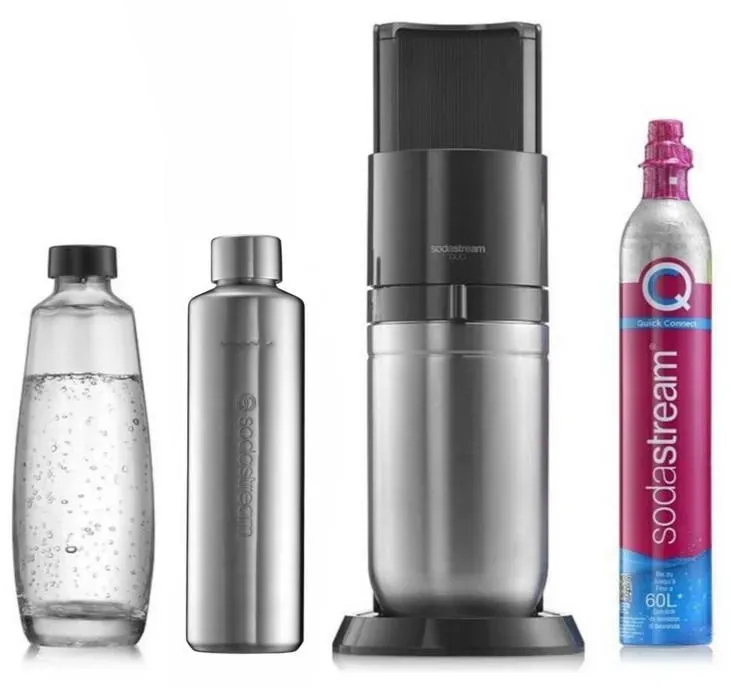 Verfügbarkeit: ca. 3 Werktage - Kategorie: Wassersprudler - Sodastream - GTIN:7290116748412 - SodaStreamWASSERSPRUDLER DUO Inkl. Metallflasche, in der Farbe Anthrazit, aus dem Material Metall, Kunststoff, Glas Der Artikel hat eine Größe von 15.8x44x31 cm. - 89,90 Euro bei XXXLutz.de - gefunden von billiger.de Dieses Set in Schwarz mit Glas- und Metallflasche bietet eine gute Ausstattung für den Preis. ![]() ![]() SodaStream Wassersprudler DUO inkl. 1x Glasflasche 1 l + 1x Metallflasche 0,8 l, 1x QC, (Set, 4-tlg) schwarz