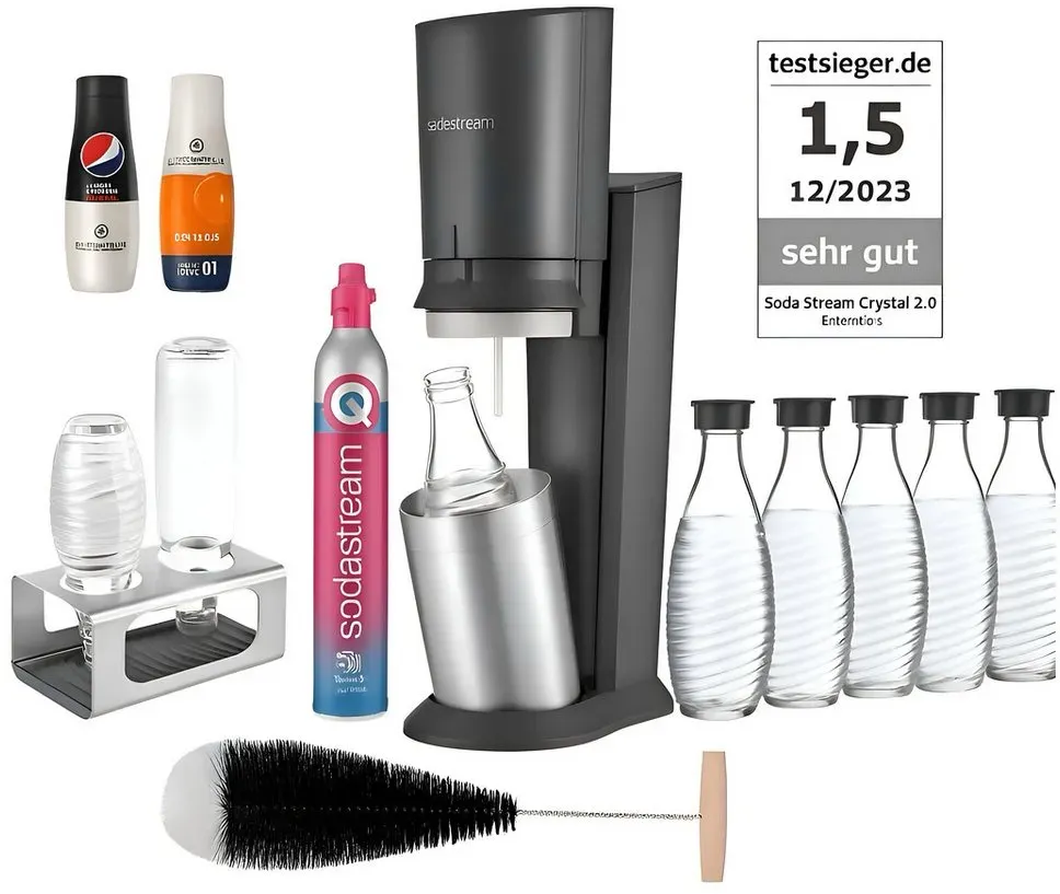Kategorie: Wassersprudler - Sodastream - GTIN:7290116742380 - Crystal 3.0, schwarz, inkl. 60 Liter Zylinder & 1 Glaskaraffe 615 ml - 139,99 Euro bei expert TechnoMarkt - gefunden von billiger.de Dieses umfangreiche Vorteilspack ist perfekt für Familien oder Vieltrinker, da es neben dem Sprudler auch Sirup und gleich fünf Glaskaraffen enthält. ![]() ![]()