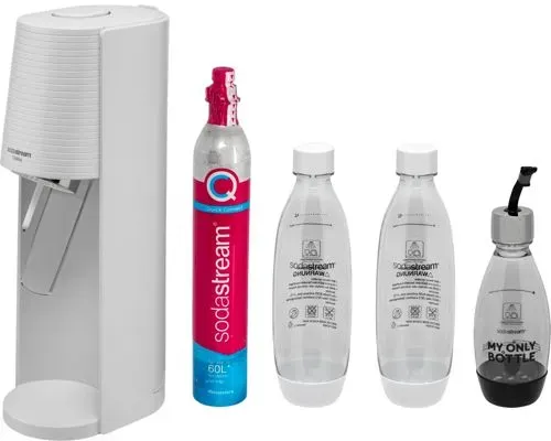 Kategorie: Wassersprudler - Sodastream - GTIN:7290113767898 - PRAKTISCH UND FLEXIBEL: Trink dein Sodawasser zuhause und unterwegs aus der Kunststoffflasche. Mit dem kompakten und eleganten Design passt der Trinkwassersprudler mit einer Höhe von 44cm unter jeden Küchenschrank MEHR KOMFORT UND HYGIENE: Die Kunststoffflaschen kommen mit einem max. Fassungsvermögen von 1 bzw. 0,5 Liter und sind spülmaschinengeeignet UMWELTFREUNDLICH: Sie leisten einen aktiven Beitrag zum Umweltschutz, da Sie tausende Flaschen einsparen - das Sprudelwasser kann auch mit Sirup geschmacklich verfeinert werden NEUES ZYLINDERSYSTEM: Die neue TERRA ist mit dem revolutionären Quick-Connect CO2-Zylindersystem ausgestattet, welches einen kinderleichten Wechsel der CO2-Kartusche ermöglicht. Einfach einsetzen, Zylinderhebel schließen - und fertig. Gerne können Sie Ihren bekannten blauen CO2-Zylinder beim stationären Händler Ihres Vertrauens gegen einen neuen Quick-Connect CO2-Zylinder tauschen. LIEFERUMFANG: 1x SodaStream TERRA Wassersprudler (Farbe: Schwarz), 1x SodaStream Quick-Connect CO2-Zylinder, 2x 1L spülmaschinenfeste KST-Flasche und 1x 0,5L spülmaschinenfeste KST-Flasche - 68,69 Euro bei Amazon Marketplace Home - gefunden von billiger.de Ein Vorteilspack in Weiß mit drei Flaschen, das ein gutes Preis-Leistungs-Verhältnis bietet. ![]() ![]()