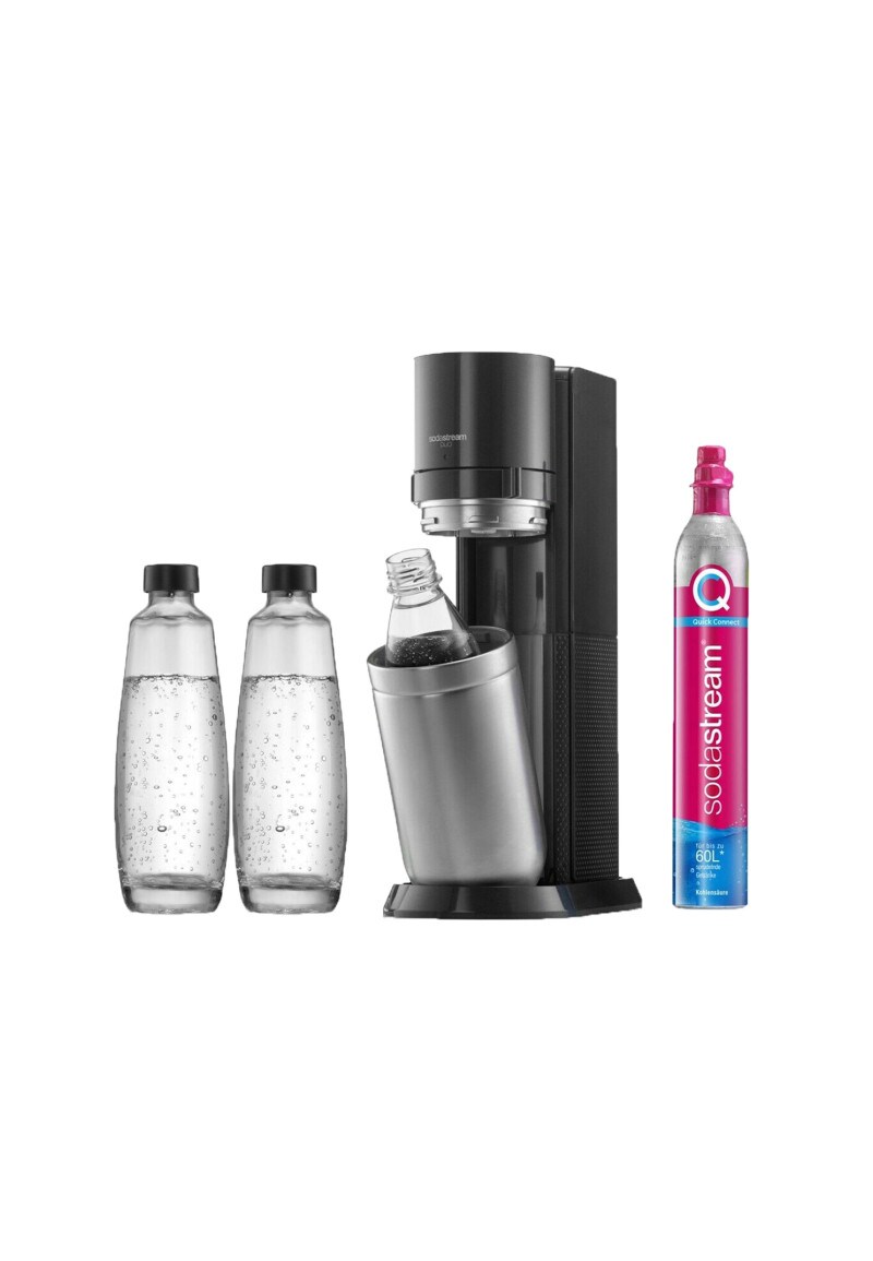 Der angezeigte Preis könnte seit dem letzten Update gestiegen sein - EAN: 7290113761308 - sprudelt sowohl Glas- als auch Kunststoffflaschen 2x grosse 1 Liter spülmaschinenfeste Glaskaraffe 1 Liter wiederverwendbare, spülmaschinenfeste Fuse Kunststoffflasche Quick Connect-Technologie ermöglicht einfaches Einsetzen des CO2-Zylinders (kein... - Zustand: NEW - bei Metro.de - gefunden von Buycentral Der E-Duo Titan Standard ist ein elektrisches Modell, das Komfort und modernes Design vereint. ![]() SodaStream E-Duo Titan Standard