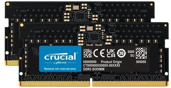 Verfügbarkeit: 5-7 Werktage - Kategorie: Arbeitsspeicher - Corsair - GTIN:0840006681588 - Arbeitsspeicher (RAM), 16GB: 1 x 16GB (Single Channel), SODIMM 262-pin für Laptop, DDR5, geschwindigkeit: 5600 MHz (MT/s) / PC5-44800, CAS Latency: 48-48-48-90, stromspannung: 1.1 volt, ungepuffert, On-Die ECC, unterstützt Intel XMP Profile, farbe: schwarz - 93,40 Euro bei Proshop.de - gefunden von billiger.de Dieses Crucial Classic Kit bietet mit 95.71 Euro ein preiswertes 2x8GB Dual-Channel-Set mit 4800MHz. ![]() ![]() Crucial Classic SODIMM DDR5-4800 - 16GB - CL40 - Dual Channel (2 pcs) - Schwarz
