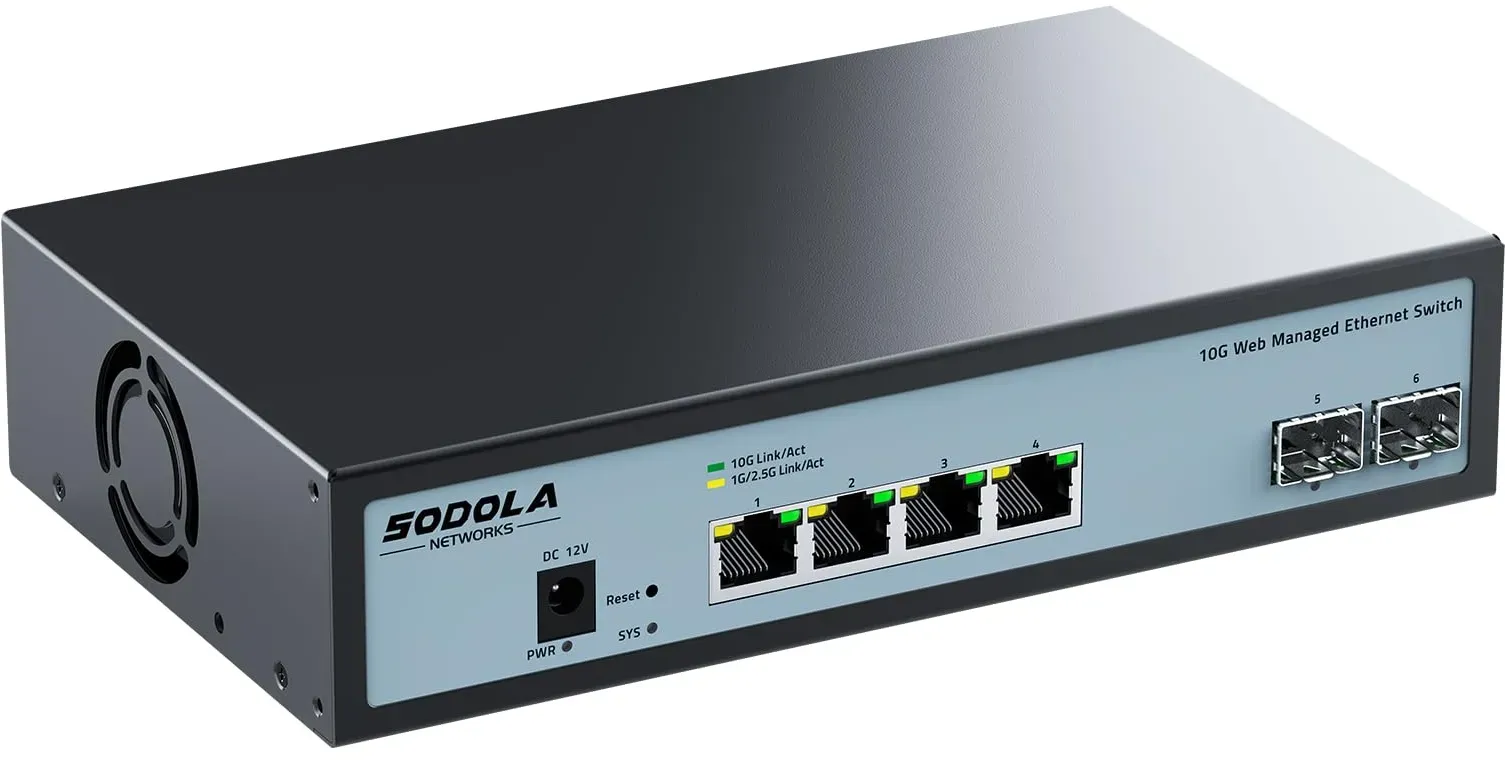 Auf Lager Versand durch AmazonSODOLA 6 Port 2.5G Easy Web Managed Switch, 4 x 2.5G Base-T Ports, 2 x 10G SFP+,Statische Aggregation/QoS/VLAN/IGMP, 2.5gbit LAN Netzwerk Switch
