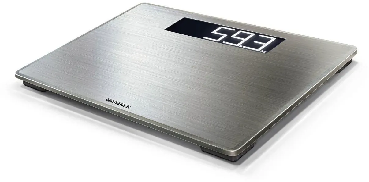 EAN: 4006501638670 - Extragroße, beleuchtete LCD-Anzeige für beste Lesbarkeit des Gewichts auch bei schwierigen Lichtverhältnissen (Ziffernhöhe 4,5 cm)Hochwertige Edelstahloberfläche mit Anti-Fingerprint-Beschichtung für einfache ReinigungFlaches Design für sicheren Stand auf der WaageExtragroße Trittfläche für besonders komfortables WiegenSehr hohe Tragkraft bis zu einem maximalen Gewicht von 180 kg (100-g-genau)Komfortables, automatisches Einschalten der Waage direkt beim BetretenSehr energiesparend durch automatische AbschaltfunktionStandsicher durch rutschhemmende FüßeSofort startklar dank mitgelieferter BatterienBesonders lange Batterielebensdauer von mehr als drei Jahren bei zweimal täglicher NutzungGewichtseinheiten einfach umschaltbar zwischen kg, lb und st - bei kaufland.de - aus Yadore Produktdaten Dieses Angebot von voelkner Marktplatz für 38.21 Euro hebt sich durch das gebürstete Edelstahl-Design hervor. ![]() ![]() Soehnle Style Sense Safe 300 Personenwaage digital Wägebereich (max.)=180kg Edelstahl (gebürstet)