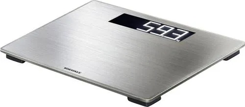 Soehnle - EAN: 4006501638670 - Ein sorgfältig geplantes und eingerichtetes Badezimmer braucht Accessoires, die sich perfekt ins Gesamtbild einfügen. Genau das Richtige für die digitale Personenwaage Style Sense Safe 300. Mit ihrer besonders hochwertigen Edelstahl-Wiegefläche ist die Waage weit mehr als ein unverzichtbarer Begleiter im Bad. Sie ist ein Designobjekt, das moderne Eleganz ins Bad bringt - und zugleich mit zahlreichen Funktionen überzeugt. Einen sicheren und komfortablen Stand ren das flache Design in Verbindung mit den rutschhemmenden Standfüßen und der XXL-Trittfläche aus Edelstahl, die durch die Anti-Fingerprint-Beschichtung leicht zu reinigen ist. Harmonisch integriert ist die extragroße, beleuchtete LCD-Anzeige, die sich auch bei schwierigen Lichtverhältnissen hervorragend ablesen lässt. Auch die sehr hohe Tragkraft kann sich sehen lassen. Angezeigt wird das Gewicht in präzisen 100-g-Schritten bis 180kg - dank der automatischen Ein- und Ausschaltfunktion komfortabel beim Betreten der Waage. So ist die Style Sense Safe 300 äußerst energiesparend und die mitgelieferten Batterien halten selbst bei zweimal täglichem Wiegen bis zu drei Jahre. - bei e-tec.at - aus Yadore Produktdaten Dieses eBay-Angebot für 38.96 Euro bietet eine digitale Personenwaage aus Edelstahl. ![]() ![]() SOEHNLE 63867 - Style Sense eBay Safe 300 digitale Personenwaage Edelstahl Digitalwaage