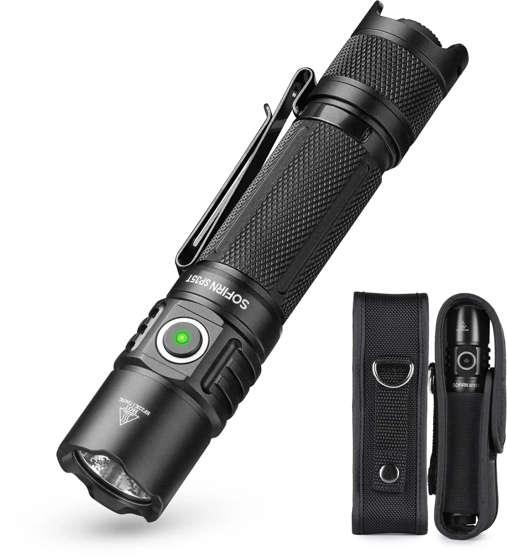 Auf Lager Versand durch AmazonSofirn SP35T Taktische Taschenlampe mit Taschenlampenholster, 3800 Lumen mit Doppelschalter, 8 Lichtmodi, Led Taschenlampe, IPX8, USB-C, Taschenlampe Aufladbar für Jagen, Camping, Laufen und Angeln