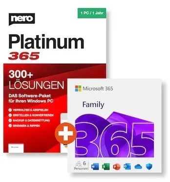 Antivirus- und Sicherheitssoftware Gesamtsortiment IT + Multimedia Softwarelösungen Software Box - EAN:0196388539314 - -Microsoft 365 Single umfasst 1 TB Speicherplatz in der Cloud, erweiterte Sicherheit und innovative Apps mit KI.1 -Für eine Person. -Zur Verwendung auf bis zu fünf Geräten gleichzeitig. -Funktioniert auf PC, Mac, iPhone, iPad und Android-Smartphones und Tablets. -1 TB (1000 GB) sicherer Cloudspeicher. -Word, Excel2, PowerPoint, Outlook3 und OneNote-Desktop-Apps mit Microsoft Copilot.4 -Designer-Tool zum Erstellen und Bearbeiten von Bildern mit KI-Unterstützung.4 -Clipchamp-Videoeditor mit Premiumfiltern und -effekten. -Microsoft Defender bietet erweiterte Sicherheit für deine persönlichen Daten und Geräte. -OneDrive-Ransomware-Schutz für deine Fotos und Dateien. -Fortlaufender Support, wenn du ihn benötigst. -Mit Microsoft 365 erhältst du zusätzlichen Speicher in der Cloud, erweiterte Sicherheit und KI-gestützte Features5 in einem einzigen Plan. -Sicherheits- und Verwaltungsfeatures sorgen dafür, dass deine E-Mails, Kalender und Kontakte sicher und organisiert sind. -Apps und KI, die auf den Grundsätzen von Fairness, Zuverlässigkeit und Sicherheit, Datenschutz und -sicherheit, Inklusivität, Transparenz und Rechenschaftspflicht basieren -*Die Verfügbarkeit von Apps variiert je nach Gerät/Sprache. Features plattformabhängig. -1Es gelten die Nutzungsbeschränkungen für KI. Für die Nutzung von KI-Features können möglicherweise Mindestaltersgrenzen gelten. ... Ein attraktives Bundle für Familien, das Microsoft 365 mit Copilot-KI, Cloudspeicher und NERO Platinum kombiniert. ![]() ![]() Microsoft 365 Family (Office-Apps inkl. Copilot-KI und 6TB Cloudspeicher) + NERO Platinum 365 | Download & Produktschlüssel