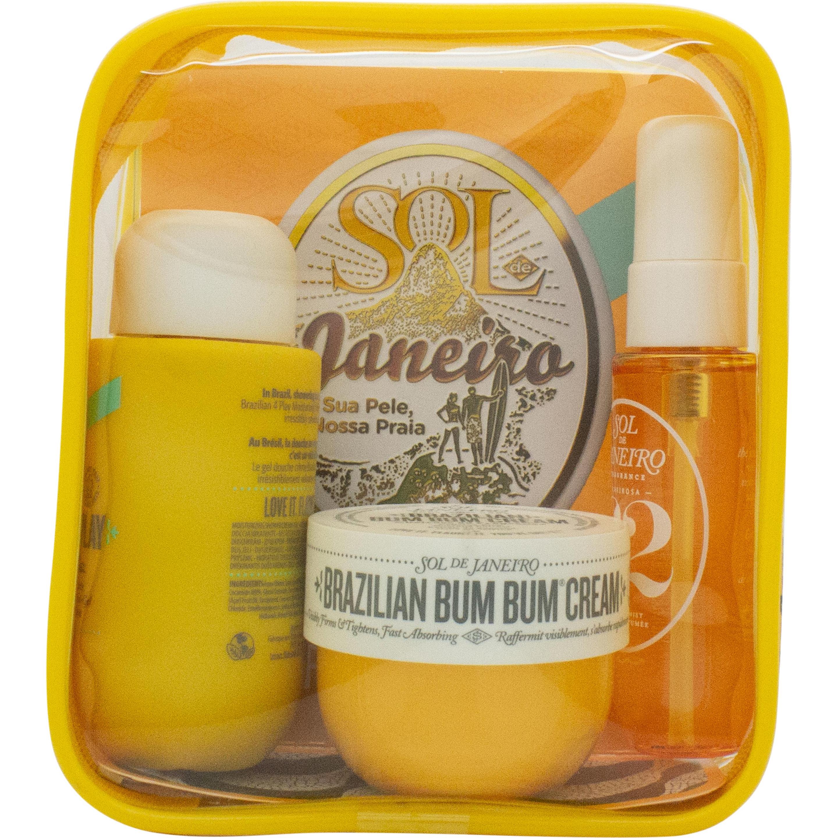 25,00 € / 1 Stk. - Deodorant Sprays Körper Körperpflege Bodyspray Deodorants - EAN:0810912037991 - Das limitierte Sol de Janeiro Cheirosa 40 Bom Dia Bright Party of Two Set ist ein reisefreundliches Duo, das eine Körpercreme und ein Duftspray kombiniert. Der Cheirosa 40 Perfume Mist für Haar und Körper entfaltet eine warm-blumige Duftkomposition. In ihr verbinden sich Noten von schwarzer Amber-Pflaume und Crème de Cassis mit frischen Jasminblüten, brasilianischer Orchidee, Vanillehölzern und warmem Moschus. Die dazugehörige Bom Dia Bright TM Body Cream ist mit Fruchtsäuren (AHAs) und Vitamin C formuliert. Durch ihre exfolierenden Eigenschaften kann die Textur der Creme zu einem glatteren und ebenmäßigeren Erscheinungsbild der Haut beitragen. Beide Produkte können für ein intensiveres Dufterlebnis miteinander kombiniert werden. Die Formulierungen sind frei von Parabenen, Mineralöl sowie Phthalaten und wurden ohne Tierversuche entwickelt. Limitiertes Duo-Set mit Körpercreme und Perfume Mist in Reisegröße. Warm-floraler Duft mit Noten von schwarzer Amber-Pflaume und Vanillehölzern. Körpercreme mit Fruchtsäuren, die zu einem glatteren Hautbild beitragen kann. Formulierung ohne Parabene, Mineralöl und Phthalate. - gefunden von Kelkoo Das Bum Bum Jet Set für 29,99 Euro ist ein beliebtes Reiseset, das die wichtigsten Produkte der Bum Bum Linie enthält. ![]() ![]() SOL DE JANEIRO de Janeiro - Bum Bum Jet Set, Orange