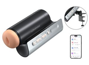 Erotik-Toys Lifestyle - - Penis-Verwöhnprogramm - per App steuerbar! Handlicher App-controlled Automatic Male Stroker Solace Pro von Lovense mit genoppter Innensleeve aus hautähnlichem Softmaterial in neutraler Optik. Verwöhnt den Penis mit intensiver Stoßfunktion mit bis zu 300 Auf-und-Ab-Bewegungen pro Minute über eine Hublänge von bis zu 7,9 cm. Ganz leise (63 dB) und diskret. Der Penis wird über die gesamte Länge rundum stimuliert. Für Feelings wie beim besten Sex! Inklusive um 180° verstellbare Tischhalterung für individuelle freihändige Verwöhn-Positionen. Einfach zurücklehnen und genießen! Mit der Lovense-App auf dem Smartphone ist der Solace Pro bequem steuerbar. Ganz komfortabel via Bluetooth. Hier kann man Stimulations-Programme selber kreieren und bequem über das Smartphone steuern und speichern. Auch vom Partner oder der Partnerin über große Entfernung. Für gefühlsechten Sex auf Distanz kann der Solace Pro mit kompatiblen Partner-Toys gekoppelt werden. Teledildonic-Sensoren übertragen dann die Bewegungen des Partners oder der Partnerin auf den Masturbator - und umgekehrt. Außerdem kann sich der Masturbator mit interaktiven Videos, virtueller Realität, Games und Musik synchronisieren. Zur leichten Reinigung ist die softe Noppen-Innensleeve aus dem Gehäuse herausnehmbar. Und kann auch gegen eine andere Lovense-Sleeve ausgetauscht werden. Wiederaufladbar - inklusive USB-Ladekabel. Gesamtlänge 23,2 cm, 13,6 cm breit, Einführtiefe 18 cm. Gewicht 1,2 kg. ABS, TPE, ... ![]() ![]() Lovense Solace Pro Automatischer Masturbator - Beige