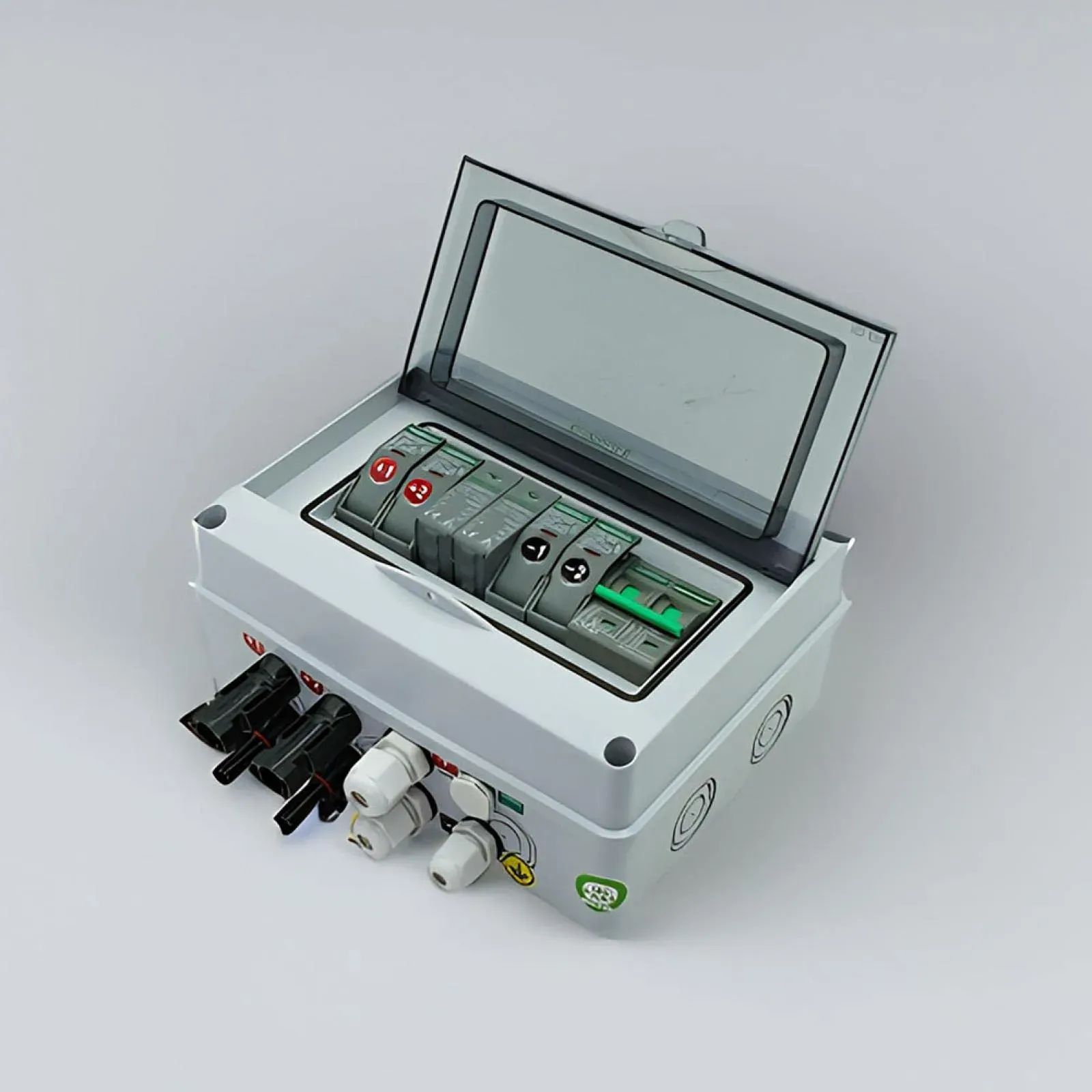 Verfügbarkeit: Auf Lager - Kategorie: Sonstige Elektroinstallationsartikel - DEWIN - ÂFunktion: Unser Photovoltaik Kombinierer Box ist mit einem speziellen überspannungsschutz PV, einem DC Trennschalter Sicherungshalter mit 30A Sicherung und bietet mehrere Schutzfunktionen wie überspannung, überlastung, Blitzschutz usw., um Stabilität und Sicherheit zu gewährleisten Betrieb Ihrer Photovoltaikanlage. ÂDie Solar-Kombinationsbox: Enthält 4 * 30A Solar DC Sicherungen und Sicherungskästen, 1 * 2P DC 1000V 63A Trennschalter, 1 x 2P DC1000V 40KA überspannungsschutz PV, 1 x wasserdichten IP65-Anschlusskasten. ÂFeine Verarbeitung: Die Photovoltaik Kombinationsbox besteht aus hochwertigem PC-Flammschutzkunststoff, ist feuerbeständig und flammhemmend, IP65 staub- und wasserdicht, stark wetterbeständig, kann im Freien verwendet werden und die Lebensdauer der Box beträgt mehr als . ÂEinfach zu bedienen: Der Photovoltaik-Kombibox verfügt über ein wasserdichtes Steckerdesign, das für die Verkabelung praktisch ist, wasserdicht und staubdicht ist, und die internen elektrischen Komponentenleitungen wurden angeschlossen. Die Verwendung erfolgt einfach durch Anschließen der Ein-/Ausgangs-/Erdungskabel, was einfach und bequem ist. ÂAnwendung: Der PV Kombinierer Box ist mit einer transparenten Abdeckung ausgestattet, die den Status des Hauptschalters und des Blitzschutzes visuell überprüfen kann. Unser Solar-Kombikasten ist mit der überwiegenden Mehrheit der auf dem ... Diese größere PV-Combiner-Box mit 2 Eingängen und 2 Ausgängen bietet erweiterten Schutz und Flexibilität für komplexere Solaranlagen. ![]() ![]() RANRAO Solar PV Combiner Box 2 In 2 Out PV Anschlusskasten 1000V mit 3P 1000V DC für SPD, 1000V 16A DC-SICHERUNG und 32A Trennschalter, Solar PV Anschlusskasten IP65 für Solarmodul-System-Kit