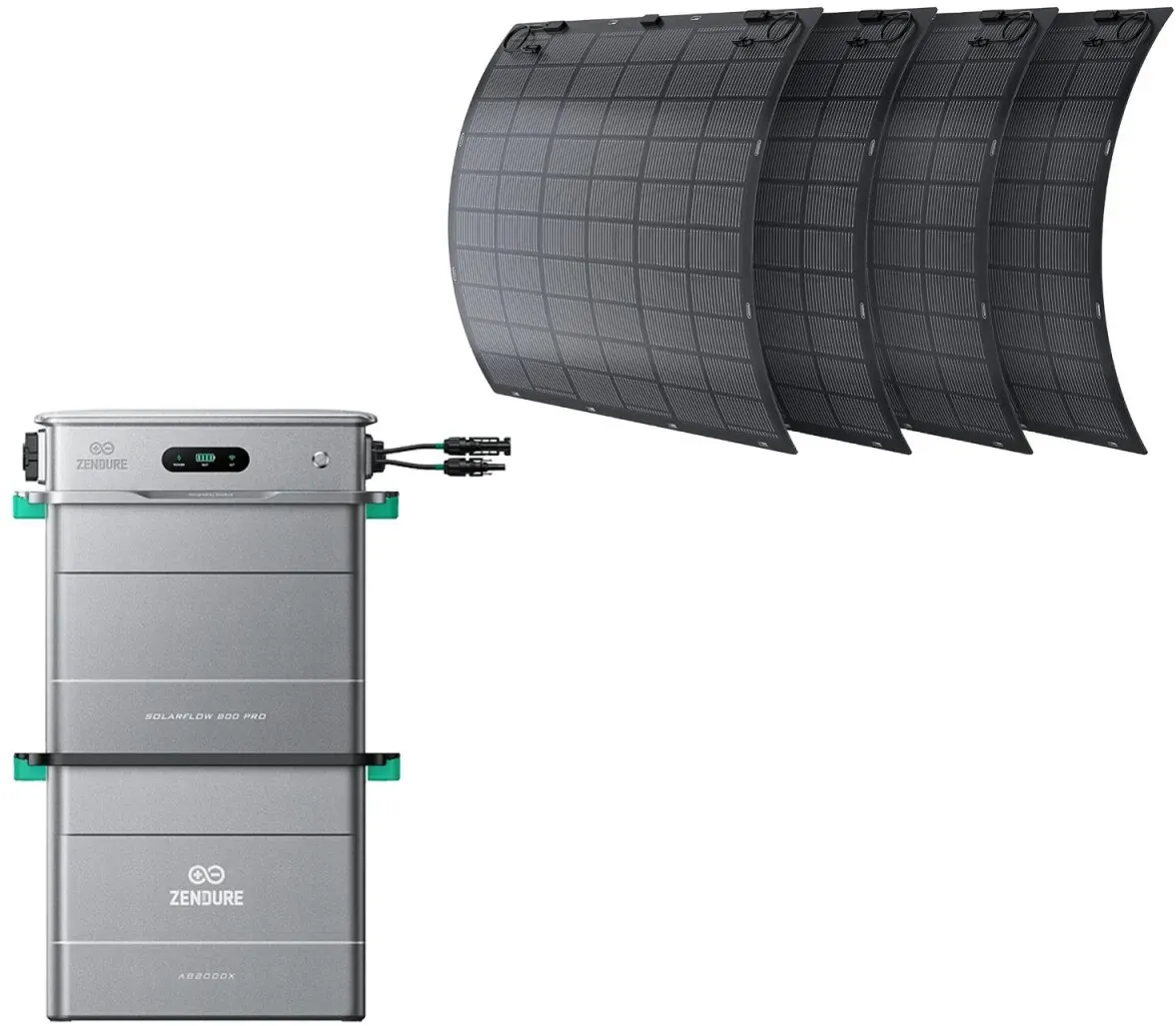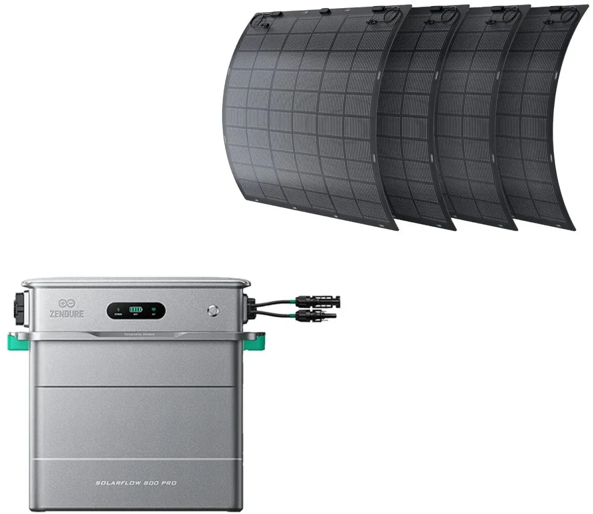 Kategorie: Solaranlagen - Zendure - GTIN:4255718712424 - Zendure SolarFlow 800 Pro Intelligentes Speichersystem für Balkonkraftwerke Mit dem SolarFlow 800 Pro von Zendure erlebst du eine neue Dimension smarter Energieverwaltung. Das System kombiniert einen bidirektionalen 800 W Mikrowechselrichter mit einer integrierten 1920 Wh LiFePO4-Batterie , vier unabhängigen MPPTs zu je 660 W , einem separaten BMS-Modul sowie der fortschrittlichen GaN-Technologie für höchste Effizienz und maximale Flexibilität. Highlights 800 W bidirektionales AC-Laden/Entladen 1000 W netzunabhängige Off-Grid-Versorgung 4 MPPTs 660 W für maximale Energieausbeute Erweiterbar auf bis zu 11,52 kWh (mit bis zu 5 AB2000X Akkus) AI-gesteuertes Energiemanagement mit ZENKI Schnelle Reaktionszeit - 1297,00 Euro bei Lion-Energy - gefunden von billiger.de Dieses Angebot ist eine solide Option für ein Balkonkraftwerk-Set mit 3,8 kWh Speicher und flexiblen Modulen. ![]() ![]() Zendure SolarFlow 800 Pro 920 Wp Balkonkraftwerk Set 3,8 kWh Speicher mit 4x230 Wp flexiblen Modulen