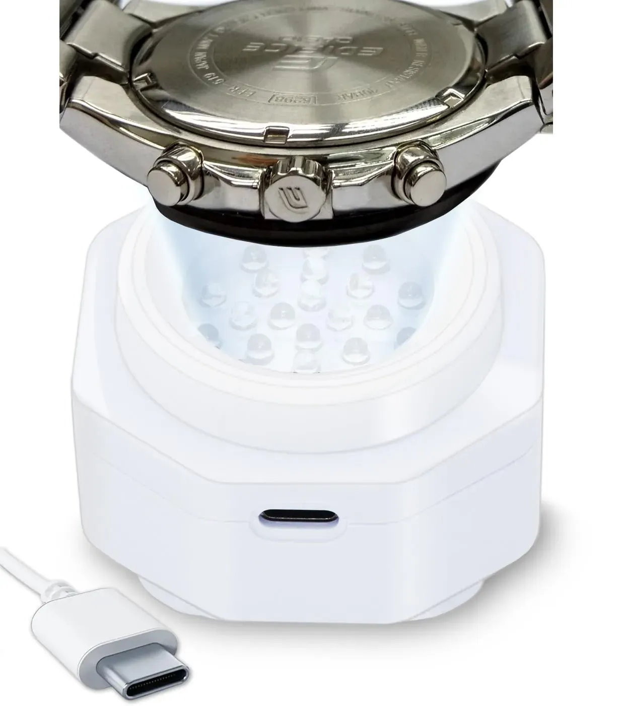 Auf Lager Versand durch AmazonCoolFire - Typ-C UV-freies Solaruhr-Schnellladegerät für alle Eco-Solaruhren für Herren, Reloj Hombre tragbares Batterieladegerät. für alle Arten von Öko-Solaruhren. (Silber)