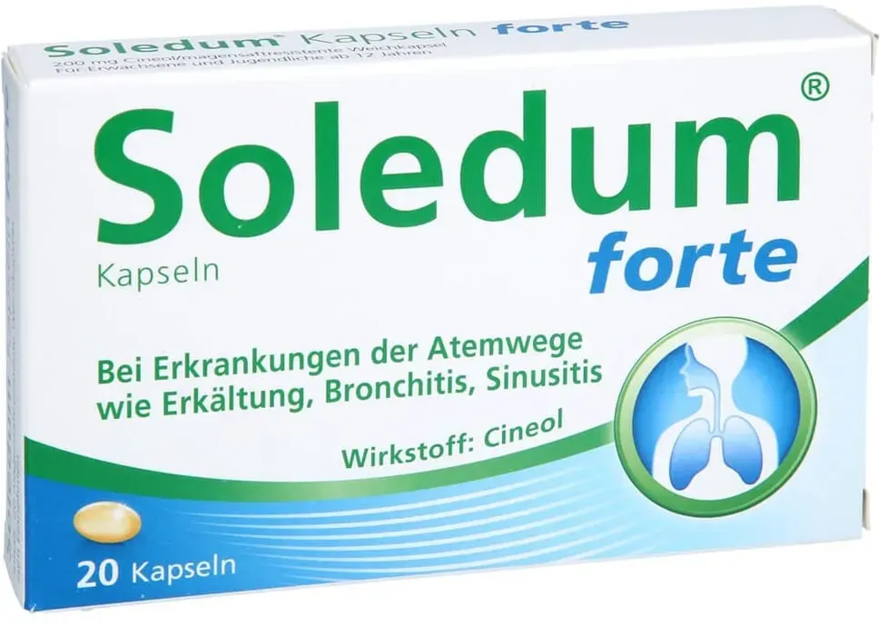 Soledum META PreisvergleichMit dem Meta-Preisvergleich suchen Sie gleichzeitig bei den großen Preisvergleich Portalen!Jetzt live Suche nach soledum starten! Soledum KaufberatungSoledum ist ein pflanzliches Arzneimittel mit dem Wirkstoff Cineol, das vor allem bei Erkrankungen der Atemwege wie Erkältung, Bronchitis und Sinusitis eingesetzt wird. Es wirkt entzündungshemmend, schleimlösend und verbessert die Selbstreinigung der Atemwege, wodurch festsitzender Schleim gelöst und Erkältungssymptome gelindert werden[1][3][7]. Wichtige Punkte, die Sie beachten sollten:
