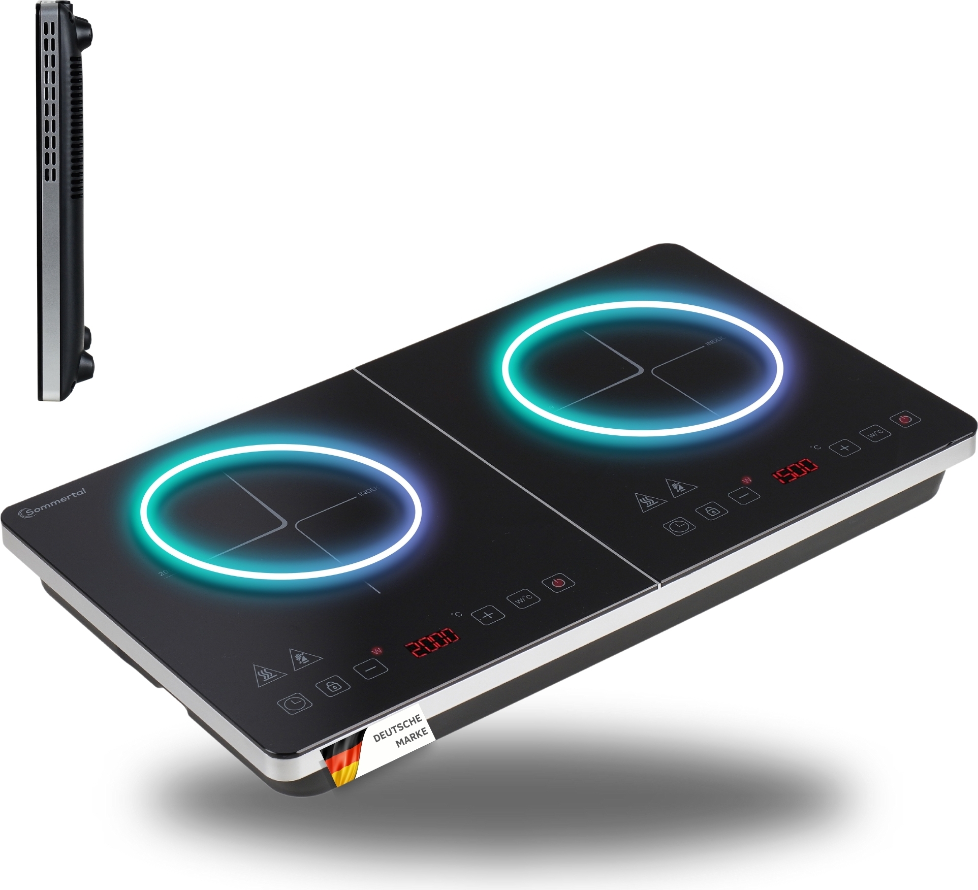 Verfügbarkeit: Auf Lager - Kategorie: Kochplatten - sommertal - GTIN:4250263782281 - 🔥 LEISTUNGSOPTIMIERTE KüHLUNG: Durch das optimierte Kühlsystem bleibt das Kochfeld auch bei intensiver Nutzung angenehm kühl. Ein leistungsstarker Lüfter sorgt dafür, dass die Wärme effizient abgeleitet wird, was die Lebensdauer des Geräts verlängert, und eine gleichbleibend hohe Leistung gewährleistet. 🔥 SUPER SLIM DESIGN: Trotz der zwei Kochzonen bleibt das Induktionskochfeld schlank und platzsparend. Das elegante Design fügt sich nahtlos in jede Küchenumgebung ein und bietet gleichzeitig genug Kochfläche für Ihre kulinarischen Kreationen. Ideal für kleine Küchen, Apartments oder mobile Küchenlösungen. 🔥 EINFACHE UND SCHNELLE BEDIENUNG: Die Touch-Bedienung macht die Steuerung des Kochfelds zum Kinderspiel. Mit nur einem Fingertipp können Sie zwischen der Temperatur und der Wattzahl auswählen oder den Timer aktivieren. Das Mikrokristallin Glas ist widerstandfähig und kratzfest, damit Sie lange Freude an diesem hochwertigen Induktionskochfeld haben. 🔥 TüV GS zertifiziert: Hochwertige Elektronik mit geprüfter Sicherheit. Dieses Kochfeld das GS-Zertifikat durch den TüV Rheinland (ID 1111290370) erhalten. 🔥 TECHNISCHE DATEN: 4,5cm x26cm x32cm (HxBxT), 3500W, 230V, Timer (bis max. 4 Stunden), Kindersicherung, GS-Geprüft, Gewicht: 4 kg, Lieferumfang: 1x 2er Induktionskochfeld, Mikrokristallin Glas, Gummifüße, kompatibel mit ... ![]() SOMMERTAL Ommertal Induktionskochfeld 2 Platte 3500W Tragbar Super-Slim Design bis 240 c mit 4h Timer, Touch-Bedienung, Kindersicherung