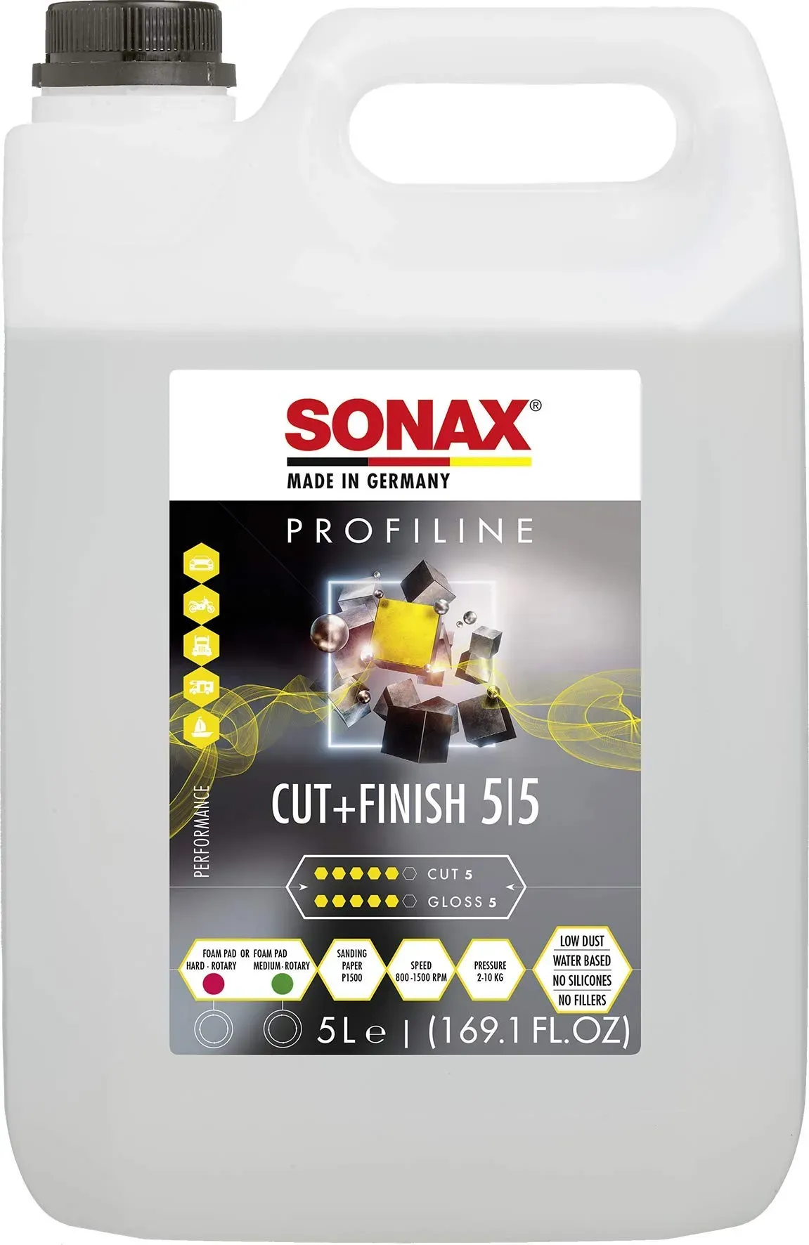 6 Händlerangebote bei billiger.de - Kategorie: Autoreinigung & Pflege - Sonax - Innovative Politur mit hoher Schleifleistung zur schnellen Beseitigung von Fehlstellen wie Staubeinschlüssen, Farbnebel und Schleifspuren nach der Reparaturlackierung. Hoher Abtrag bei gleichzeitig hohem Glanzgrad, lange verarbeitbar mit hervorragendem Abwischverhalten. Bestens geeignet zum Polieren von angeschliffenen Stellen. Entfernt Schleifriefen von Schleifpapier P1500. Auch mit Exzentermaschine verarbeitbar, wenn der Verkratzungszustand dies zulässt bzw. die Anschliffe entsprechend P2000 oder feiner platziert sind. Silikonfrei und staubarm. PROFILINE Cut + Finish, 1L Sonax PROFILINE Cut + Finish, Auto, Polierpaste, Exterior, Flasche, Flüssigkeit, Schwarz Sonax PROFILINE Cut + Finish. Geeignet für: Auto, Produkttyp: Polierpaste, Vorgesehene Verwendung: Exterior. Volumen (ml): 1000 ml. Menge pro Packung: 1 Stück(e) - GTIN:4064700225305 Mit 51,82 Euro für 1 Liter ist dieses Angebot von Amazon Marketplace Automotive eine attraktive Option für den Großeinkauf. ![]() ![]() SONAX PROFILINE Cut+Finish (1 Liter) zur schnellen Beseitigung von Fehlstellen nach der Reparaturlackierung | Art-Nr. 02253000