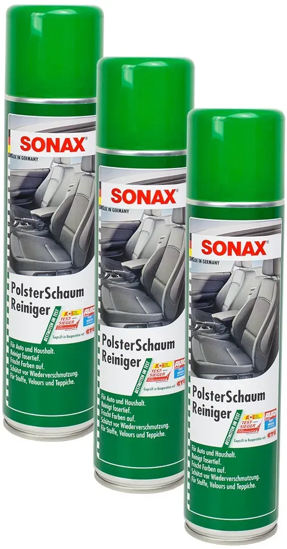 Kategorie: Reinigungsmittel - Sonax - GTIN:4059397061169 - SONAX 3X 03062000 PolsterSchaumReiniger PolsterReiniger 400ml - 26,17 Euro bei Amazon Marketplace Health & Personal Care - gefunden von billiger.de Das 6er-Pack für 44,49 Euro ist ideal für Vielnutzer oder gewerbliche Anwender, die einen größeren Vorrat benötigen und vom Mengenrabatt profitieren. ![]() ![]() Sonax Polsterschaumreiniger 6 x 400 ml