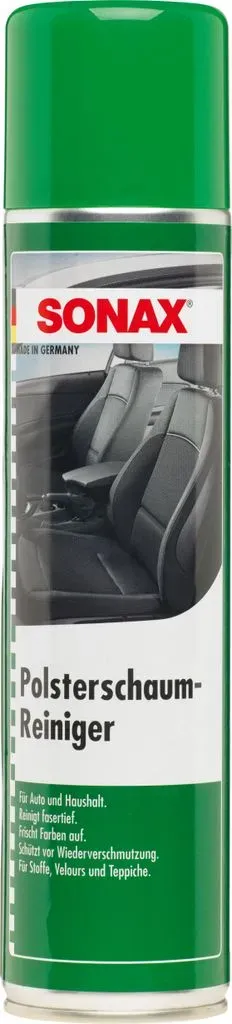 Kategorie: Autoreinigung & Pflege - Sonax - GTIN:4064700306141 - Entfernt fasertief hartnäckige Verschmutzungen aus Polstern, Teppichen und anderen Geweben Frischt die Farben auf und hinterlässt keine Schmutzränder Schützt vor Wiederverschmutzung - 8,00 Euro bei Amazon Marketplace Automotive - gefunden von billiger.de Dieses Angebot von Amazon Marketplace ist mit 8,30 Euro für eine 400ml Dose sehr wettbewerbsfähig und wird von vielen Händlern angeboten. ![]() ![]() SONAX PolsterSchaumReiniger (400 ml) entfernt fasertief selbst hartnäckige Verschmutzungen aus Polstern, Teppichen und anderen Geweben | Art-Nr. 03062000