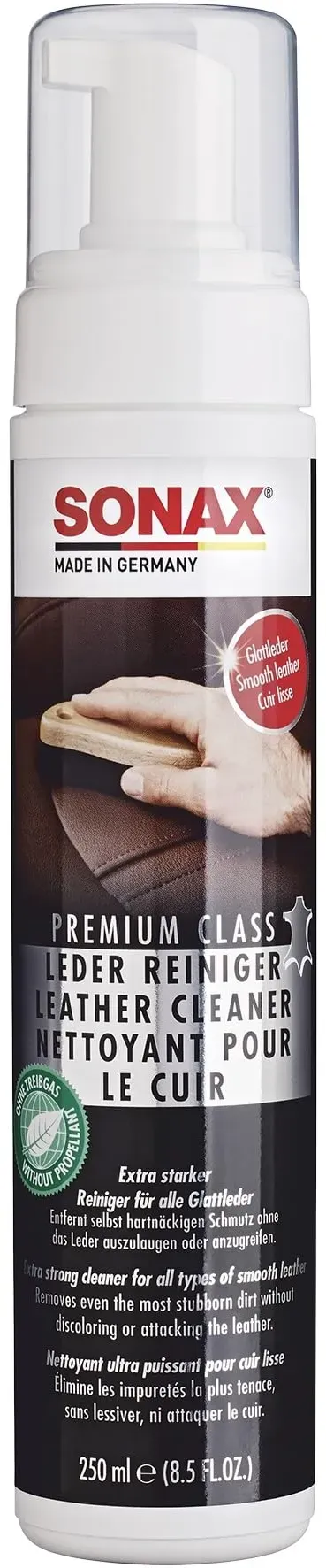 Zustand: Neu - 64,80 € / l - Leder- & Polsterreiniger - SONAX - 281141 - EAN: 4064700281141 - Die effektive Reinigung für alle Glattleder wirkt besonders schnell und intensiv bei maximaler Materialschonung Entfernt selbst hartnäckigen Schmutz wie Fettverschmutzungen und Jeans-Abrieb, ohne das Leder auszulaugen oder anzugreifen Mit Schaumapplikator für besonders einfache und gut dosierbare Anwendung Lieferumfang: 1x SONAX 02811410 PREMIUM CLASS LederReiniger (250 ml) SONAX Autopflegeprodukte - Made in Germany - Damit glänzt, was uns bewegt - 15 Händler im amazon.de Marketplace Ein weiteres preiswertes Einzelangebot, das eine gute Option für den Kauf eines einzelnen Reinigers darstellt. ![]() ![]() Sonax Lederreiniger PREMIUM CLASS LederReiniger 02811410