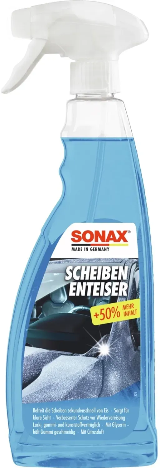18 Händlerangebote bei billiger.de - Kategorie: Autoreinigung & Pflege - Sonax - SONAX ScheibenEnteiser taut sekundenschnell zugefrorene Scheiben auf. Schützt vor Wiedervereisung und sorgt rundum für klare Sicht. Macht Eiskratzer überflüssig und verhindert dadurch verkratzte Scheiben. Mit Glycerin - hält Gummi geschmeidig. - GTIN:4064700331440 Ein preiswerter 750ml Scheibenenteiser, der für klare und blendfreie Sicht sorgt. ![]() ![]() Sonax Scheibenenteiser - Enteiserspray 750ml eBay sorgt für klare und blendfreie Sicht
