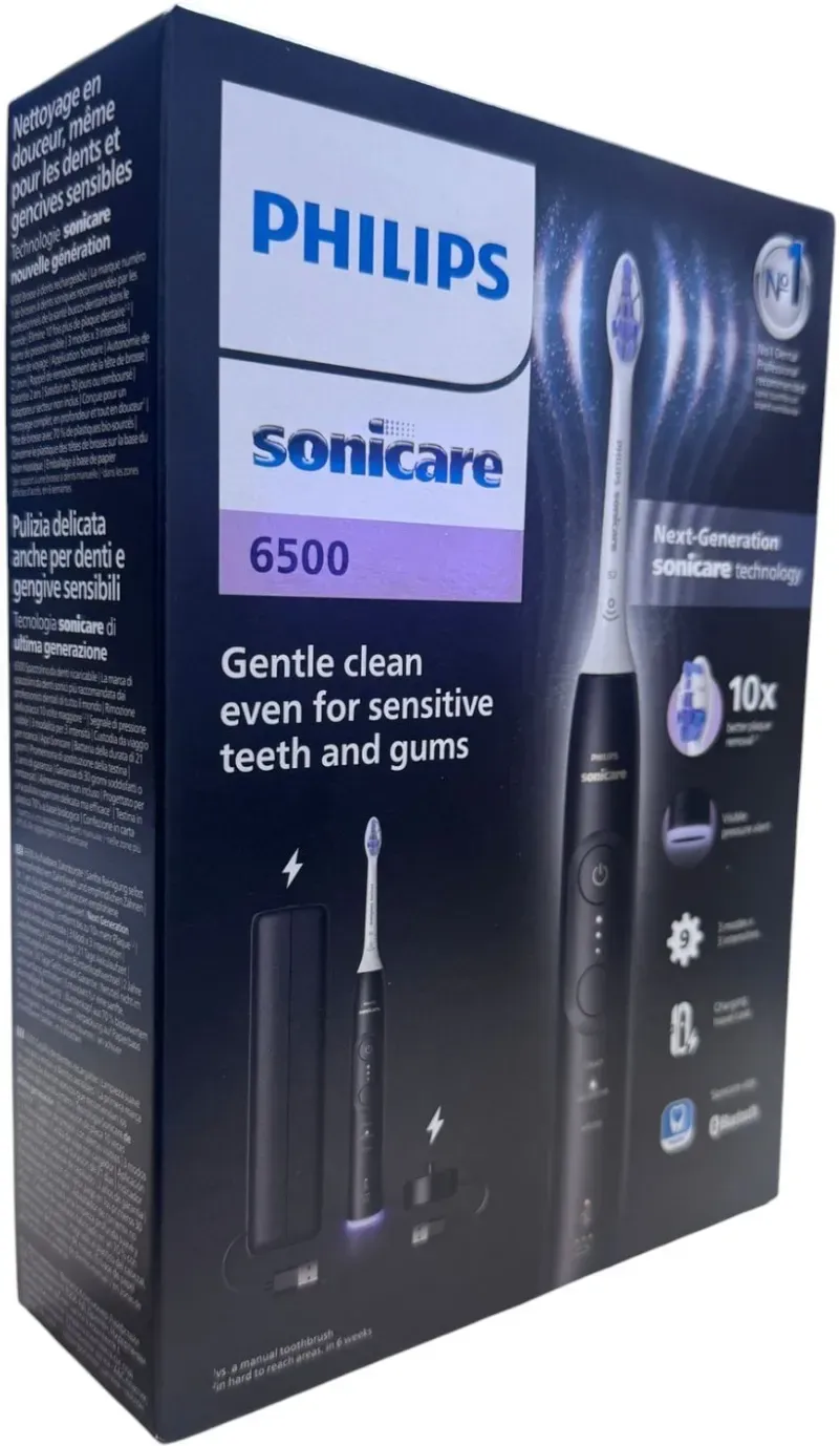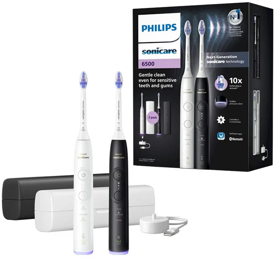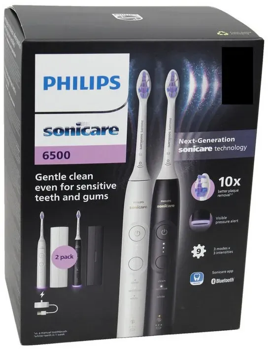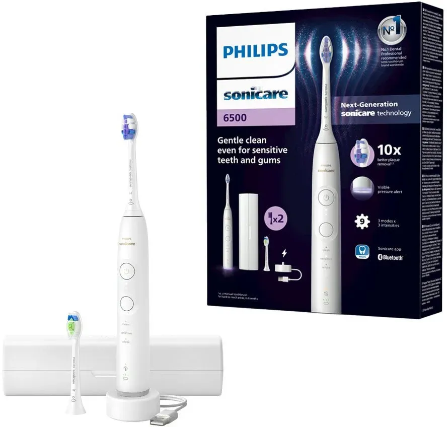 Kategorie: Elektrische Zahnbürsten - Philips - GTIN:8720689021609 - Up to 10 x more plaque removal Gentle cleaning and whitening for sensitive teeth and gums 3 modes, 3 intensities Visible pressure alert SmarTimer and BrushPacer BrushSync technology Philips Sonicare app Up to 3 weeks of brushing with one full charge Laser-welded for strength and durability Travel Case Gentle clean, even for sensitive teeth and gums Up to 10 x more plaque removal* The Philips Sonicare 6500 features Next-Generation Sonicare technology, a dedicated Sensitive mode, 3 intensity levels, a pressure alert and S2 Sensitive brush heads. - 297,63 Euro bei Proshop.de - gefunden von billiger.de Sie erhalten mehr Ergebnisse, aktuelle Angebote und weitere Preisbereiche wenn Sie den Preisvergleich aktualisieren: Mehr sonicare 6500 Angebote Jetzt live Meta-Preisvergleich starten! Sonicare 6500 Testberichte