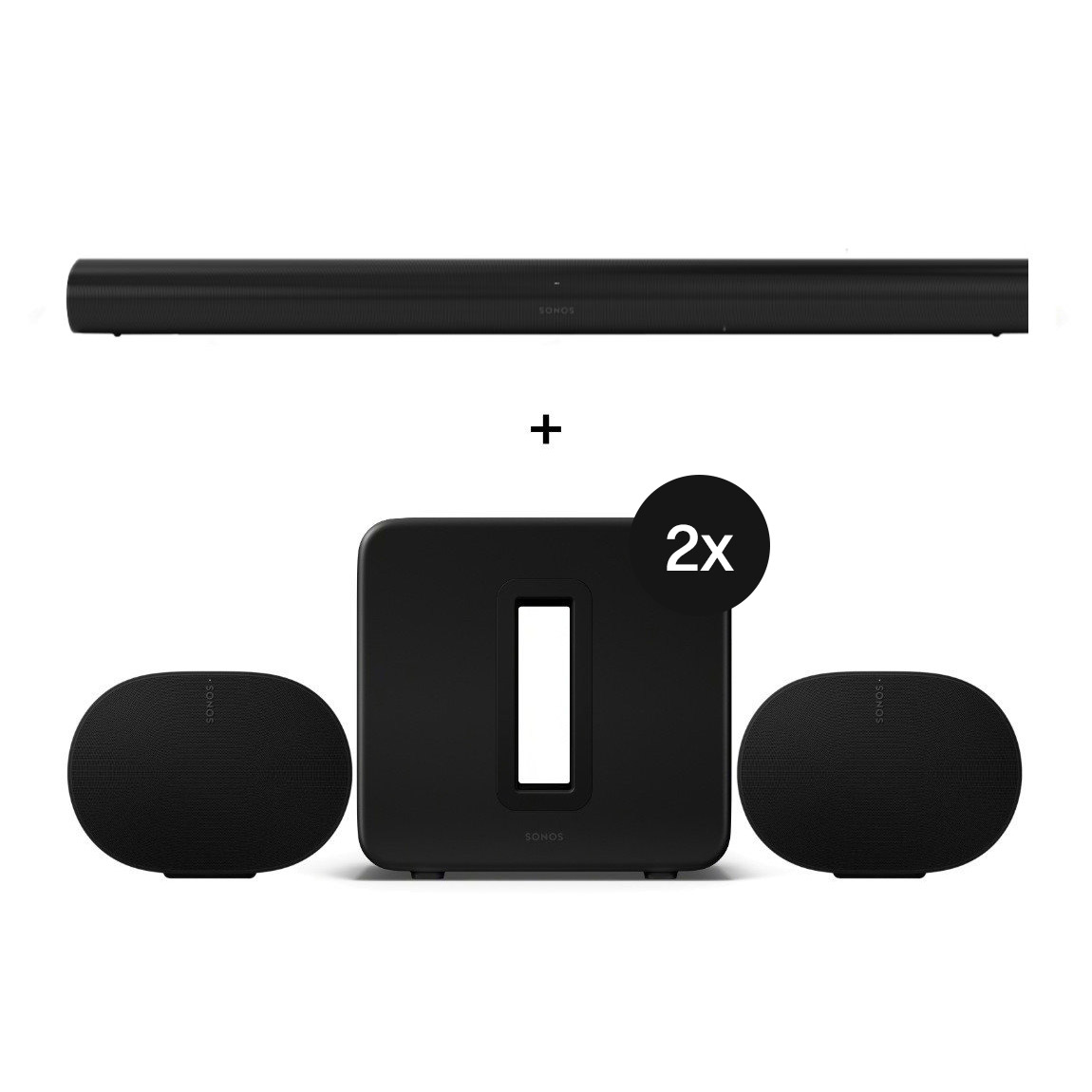 Kategorie: Surround-Systeme - Sonos - GTIN:6151117957924 - Mit dem Sonos Arc Ultra Heimkino-Set kommt es dir vor, als wärst du selbst ein Teil deines Lieblingsfilms. Dieses Set besteht aus einer Soundbar, einem Subwoofer sowie Rücklautsprechern. Mit True Dolby Atmos wird der Ton über die Decke und die Wände zu deiner Sitzposition geleitet, sodass du einen räumlichen Sound genießt. Dadurch kommt es dir vor, als würde das Flugzeug aus dem Film direkt durch dein Zimmer fliegen. Der Subwoofer ist außerdem so designt, dass du so gut wie keine Vibrationen oder Verzerrungen wahrnimmst. Damit sind dir klare und intensive Bässe rt. Dank der Rücklautsprecher hörst du den Sound auch von hinten. Sie unterstützen außerdem Dolby Atmos und bieten dir damit einen aus jeder Richtung einen räumlichen Sound. - 2210,00 Euro bei coolblue - gefunden von billiger.de Das Sonos Ultimate Set mit Arc, 2x Era 300 und 2x Sub 4 repräsentiert die Spitze der Sonos Heimkino-Systeme für anspruchsvolle Nutzer. ![]() ![]() Sonos Ultimate Set - mit Arc, 2x Era 300 und 2x Sub 4