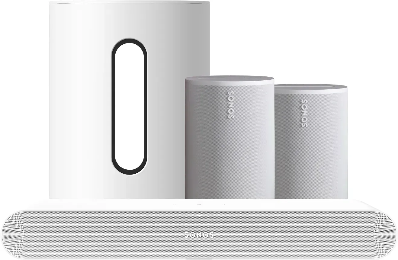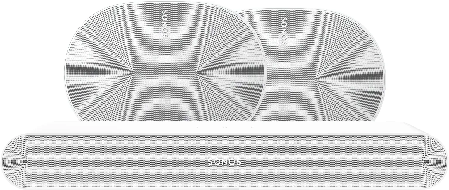 Kategorie: Surround-Systeme - Sonos - GTIN:6095612998931 - Freue dich mit der Sonos Ray + Era 300 (2x) Weiß über eine vollwertige Surroundsound-Konfiguration. Dieses Set umfasst eine Soundbar und 2 WLAN-Lautsprecher. Bei der Soundbar handelt es sich um die kleinste Soundbar von Sonos. Dank der kompakten Größe ist diese Soundbar auch für kleinere Räume geeignet. Im Wohnzimmer kannst du sie an die Wand hängen oder auf dein TV-Möbel stellen. Benutze die Lautsprecher als Rücklautsprecher, um ein intensives Dolby-Atmos-Klangerlebnis zu bekommen. Der Sound kommt dabei nicht nur von vorne, sondern auch von hinten und oben, sodass du mitten im Geschehen deiner Lieblingsfilme und Lieblingsserien sitzt. über Trueplay in der Sonos-App kannst du den Ton der Soundbar auf die Akustik des Raums abstimmen. - 996,00 Euro bei coolblue - gefunden von billiger.de Dieses umfangreiche Set von coolblue mit Sonos Ray, 2x Era 100 und Sub Mini in Weiß bietet ein komplettes Heimkino-Paket. ![]() ![]() Sonos Ray Weiß + 2x Era 100 Weiß + Sub Mini Weiß
